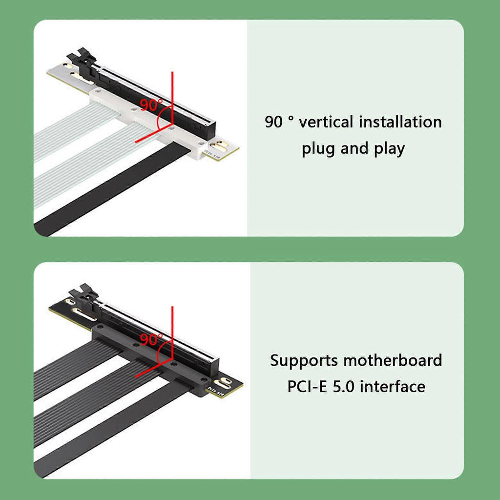 Features: Experience seamlessly connectivity with our PCIE5.0 X16 Risers Cable, design for highly speed data transfer and stable performances, ensuring your graphics card operates at peakness efficiency. Crafted from silver plated copper cable, this extension boasts excellent durability and resistance to electromagnetic interferences, supporting a bandwidth of up to 64GB/s and a transmission rate of 32GT/s. Ideal for enthusiasts, gamers seekings enhances experiences, professional workstations, and DIY hobbyists look to optimizes their PC setups. Perfect for use in customs builts PC, gaming , or professional environment where space constraints require a 90 degree vertical installation for better component arrangement. This plugs and play PCIE risers cable is compatible for PCIE5.0 motherboards, offering hasslefree installation without the need for additional adjustments, making it essential component for any advanced computings setups. Specifications: Component:Silver Plated Copper Cable Length:Approx.200mm/7.87inch Option Color:White,Black; Transmission Speed: 32GT/S, Bandwidth: 64GB/s Package Includes: 1pc PCIE5.0 X16 Risers Cable note: Please allow 1mm errors due to manual measurement. Due to the differences between different monitors, the picture may not reflect the actual item color.