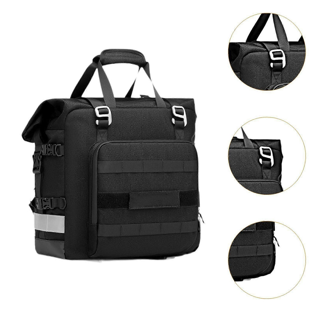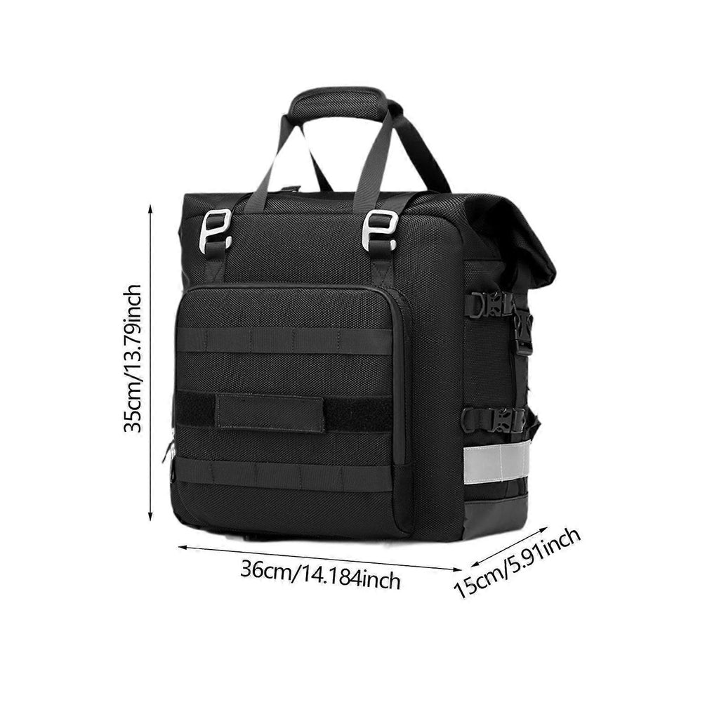 Description: Quick Release Buckles: Designed for easy access, the quick release buckles make the motorcycle tool bag simple to attach and detach the bag from your motorcycle, ensuring convenience regardless of your bike modelSpacious Storage Capacity: This Motorcycle Side Bag offers a generous storage capacity, with a compact size of approximately 20L that can expand to about 25L, providing ample space for all your riding essentialsWaterproof Design: Equipped with a fully waterproof inner liner, this Motorcycle Saddlebag bag ensures that your belongings stay dry even in rainy conditions, making it ideal for easy travel in any weatherVersatile Installation: Universal motorcycle side frame on the market, can be installed on the left or right side with or without exhaust pipe, The maximum applicable side frame pipe diameter is 22MM, and the minimum applicable pipe diameter is 10MM and belowEnhanced Safe: Featuring double reflective strips, this Motorcycle bag enhances visibility during nighttime rides by maintaining a safe distance from other vehicles and improving overall safe on the road Specification: 36cmx15cmx35cm/14.17inchx5.91inchx13.78inchExpand: 36cmx15cmx58cm/14.17inchx5.91inchx22.83inch Package Includes: 1Motorcycle Tool Bag Note: Please allow slightly errors 1-2cm differences due to manual measurement.