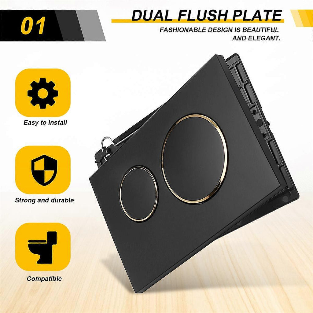 MATERIAL: The double flush plate is made of plastic which is corrosion and abrasion resistant and durable to ensure long term durability and reliability. DESIGN: fashionable design is beautiful and elegant. INSTALLATION: Follow the installation instructions for quick and easy installation. Colour: Black+Gold / Black / Black+Silver / Gold Coating Material: ABS Package Contents: 1*Dual Flush Plate Only the above package content, other products are not included. Note: Light reflection and different displays may cause the color of the item in the picture a little different from the real thing. The measurement allowed error is +/- 1-3cm.