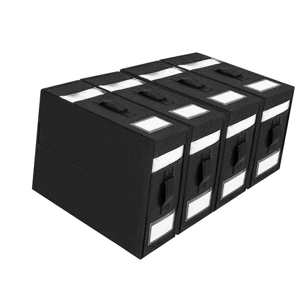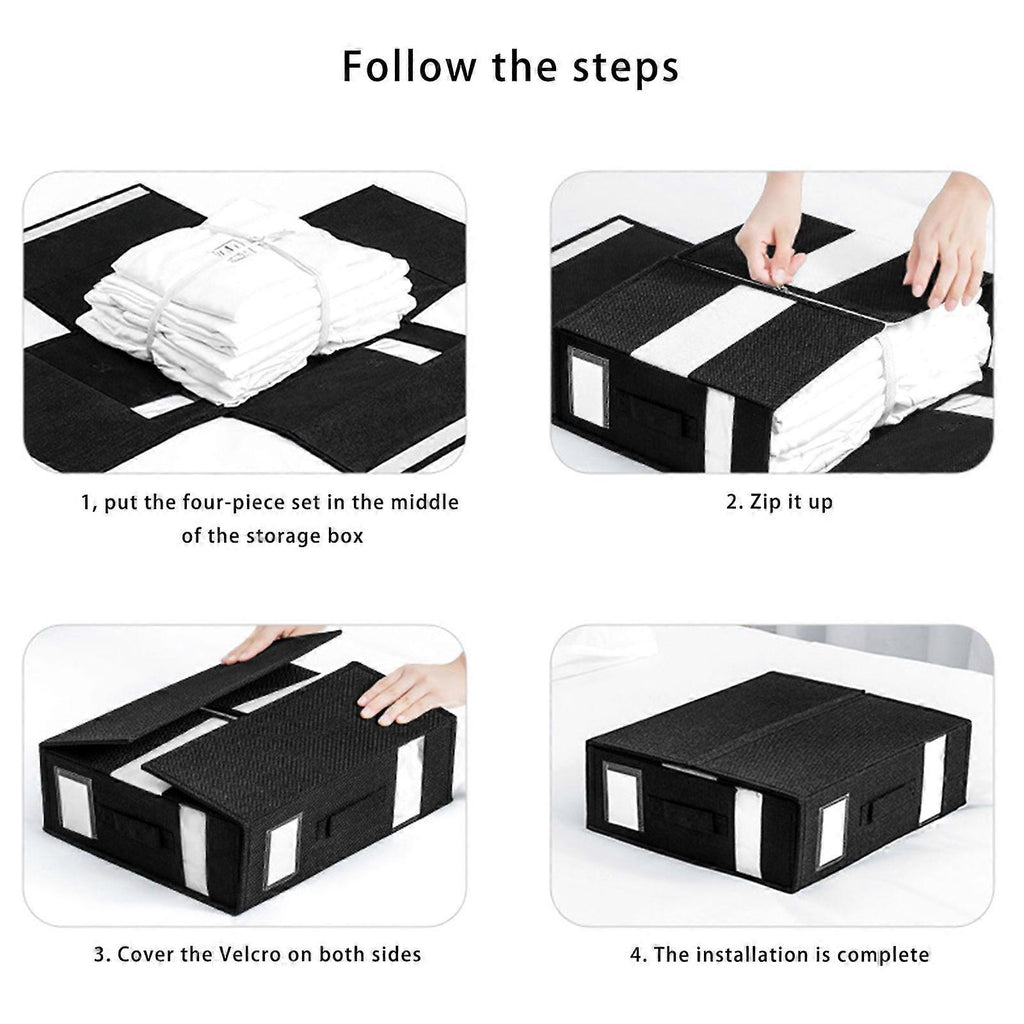 (Black) Home Storage Solution Portable Accessory for Bedding and Garments Double Window Sturdy Linen Materials 4pcs Set Black