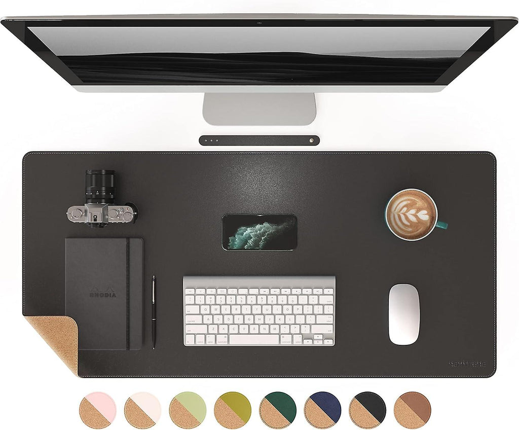 [Premium Material] Made of natural cork base and vegan PU leather, odorless and with soft and comfortable texture to relieve the strain on wrists, forearms and elbows [Double-sided material ] You have two materials to choose from: office, desk or home office, suitable for any [Waterproof and Durable] Protect your desktop from moisture and scratches with a waterproof and scratch-resistant surface . Also protect your accessories such as your phone or camera from scratches when they touch the desktop [Multifunction Mouse Pad] Oversized size for laptop, mouse and keyboard, smooth surface can be used as a mouse pad, smooth writing and painting, perfect for gamers, designers, DIY enthusiasts [Portable design] same color leather belt, easy to use, rolling mat can be taken anywhere. It is the best gift choice for your family, friends and yourself.
