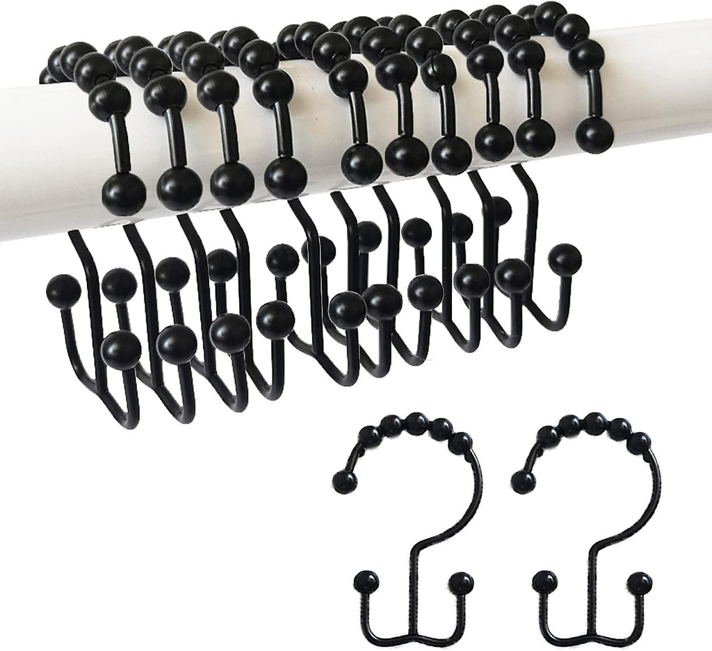 (black) Shower Curtain Hook Rings Rustproof Metal Double Roll Sliding Shower Hooks For Bathroom Shower Rod Curtains Set Of 12 (gold, Set Of 12)