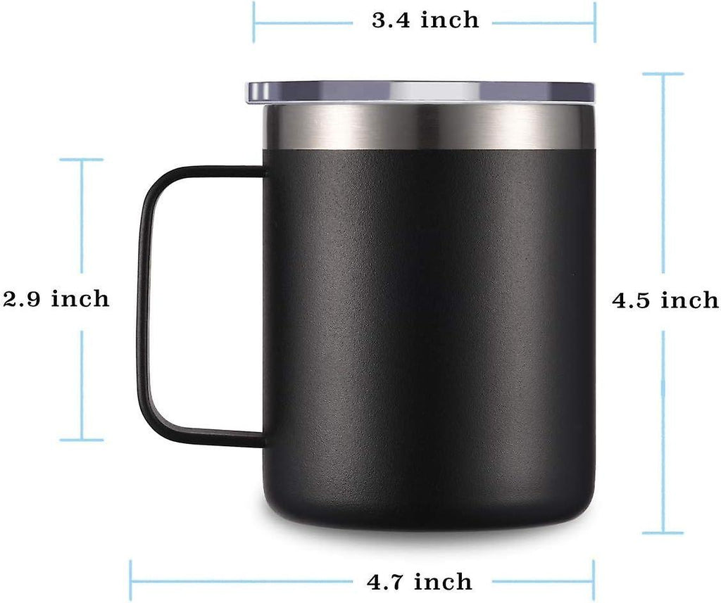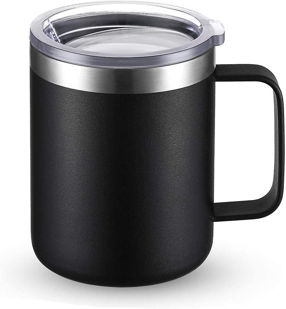 describe: Made from food-grade 18/8 stainless steel, the insulated mug features double vacuum insulation to maintain the temperature of your poured beverage, so your lemonade won't be so tastes like yesterday's coffee. Plus, this coffee mug is durable, shatterproof and super easy to clean. This coffee mug features a clear lid with a rubber seal to ensure a snug fit. It can help prevent wine or coffee from spilling if the party is in the backyard. The durable, clear lid makes it easy to see the rest of your drink. The wide and comfortable to hold non-slip handle helps you give your coffee cup a warm and loving hug, making drinking easier too. The travel coffee mug is powder coated for durability and easy access. Sweat-wicking design keeps fingers dry and prevents frostbite. If you are a coffee lover and want to drink more hot beverage every day, the coffee mug with lid will meet your expectations and will not produce steam. If you're a cold beer lover, your hands will never be cold. This lightweight, stylish mug holds up to 12 ounces of coffee or tea and keeps it hot for hours, making it also perfect for your favorite cold beer, your favorite juice or your favorite cocktail. Good insulation and a high-quality, modern design make this travel coffee mug an essential accessory for the whole family, perfect for outdoor parties or just cozy evenings at home.