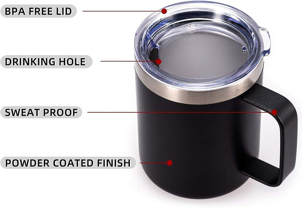 (black) Stainless Steel Coffee Mug With Lid And Handle, Double Vacuum Insulated Coffee Mug, Reusable Durable Travel Coffee Mug, Powder Coated, 1 Pack (white,