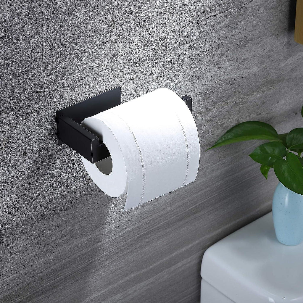[High-quality material]: Stainless steel, waterproof, rust-proof, scratch-resistant; Brushed surface, modern and anti-fingerprint, easy to clean. [1 minute installation]: self-adhesive toilet paper holder, quick and easy installation, tear off the cushion, stick on a smooth, dry wall, wait 24 hours to install to hang the tissue. [Non-slip design]: The end of the toilet paper holder is raised, which perfectly protects the paper towels on the rod and makes it easier to pull out the paper rolls. [Geometric beauty]: Just the right lines, modern and elegant, ideal for bathroom, toilet, kitchen, providing the perfect solution for decorating your home.