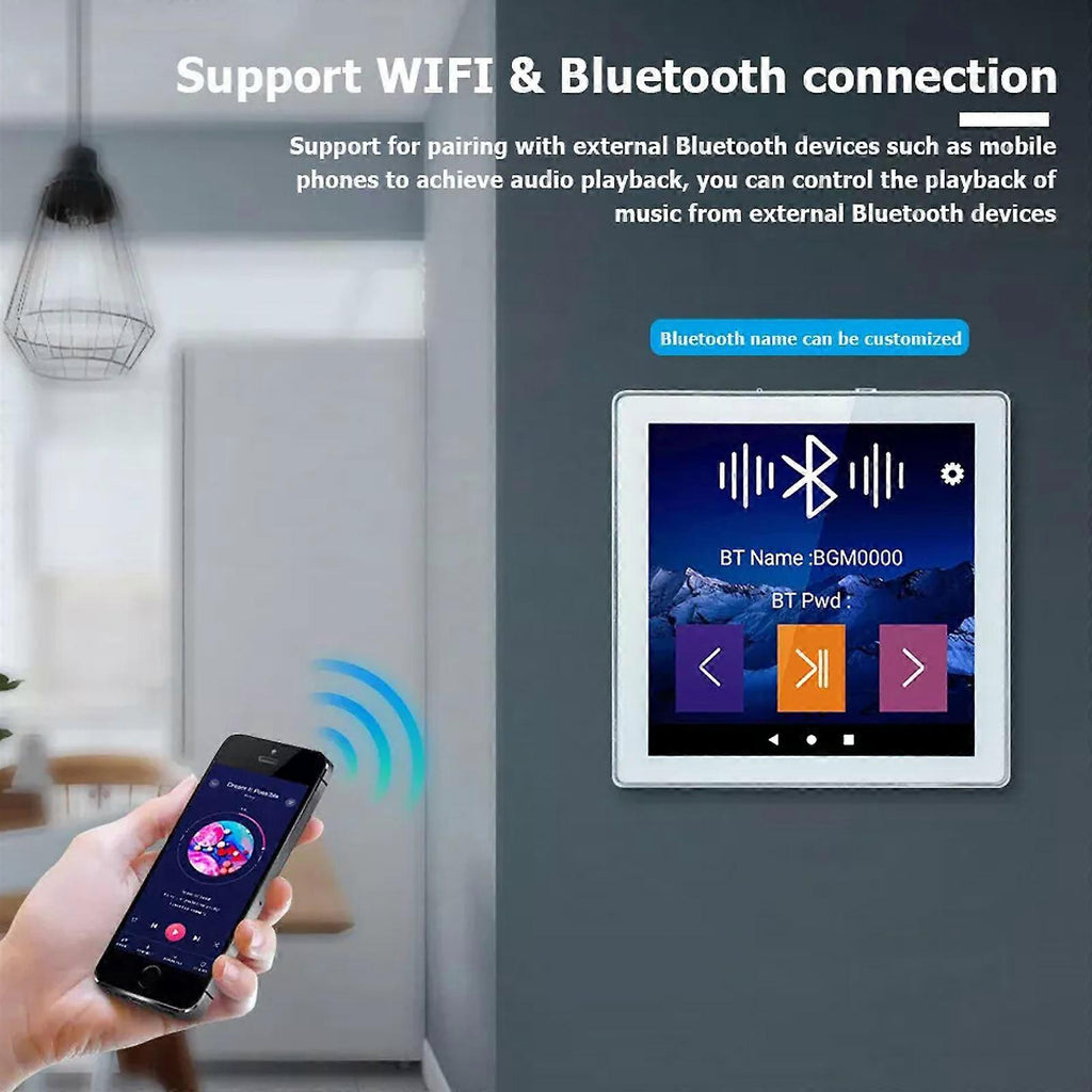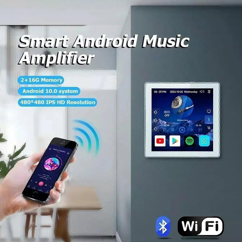 Product Description: Upgrade your home audio experience with our WiFi BT Wall Amplifier, designed for high-performance stereo sound in your home theater. This versatile music player features a powerful amplifier, remote control, and multiple connectivity options, making it an ideal addition to any modern home. With support for WiFi, Bluetooth, USB, and TF card inputs, this wall amplifier offers seamless integration with your favorite audio sources. Key Features: Advanced Android 10.0 System: Equipped with the latest Android operating system, providing a user-friendly interface and access to a wide range of apps. High-Quality IPS Display: Features a 4-inch IPS display with 480 x 480 resolution for clear and vibrant visuals. Powerful Performance: Powered by a Cortex 1.2G Quad-Core CPU with 1GB RAM and 8GB ROM, ensuring smooth operation and quick response times. Versatile Audio Sources: Supports WiFi, Bluetooth, USB/TF card, and internet radio, offering multiple ways to enjoy your music. Robust Output Power: Delivers 2x25W speaker output with a frequency range of 87.5-108MHz and an audio S/N ratio of 98dB for clear and powerful sound. Wide Bluetooth Range: Bluetooth connectivity up to 10 meters, allowing you to connect your devices wirelessly with ease. Comprehensive Connectivity: Includes audio in and out ports, OTG-USB disk support, and an RJ45 port for wired network connections. Remote Control: Comes with an IR remote control with a range of 8 to 10 meters, providing convenient control over your audio settings. Customizable Bluetooth Name: Allows you to personalize the Bluetooth name for easy identification. Global Language Support: Supports more than 150 languages, making it accessible to users worldwide. Smart Features: Compatible with Google Play Store, YouTube, Spotify, Amazon Alexa voice control, and E-share for mobile phone control. Specifications: Model: SP-PW225V Wall Amplifier RAM: 1GB ROM: 8GB CPU Model: Cortex 1.2G Quad-Core Network: WiFi (No RJ45 port) Speaker Output: 4-8 Output Power: 2x25W Screen Size: 4-inch IPS display Frequency Range: 87.5-108MHz Audio S/N Ratio: 98dB Bluetooth Distance: 10 meters IR Remote Control Distance: 8 to 10 meters Power Supply: AC 90V-250V/50Hz-60Hz Product Dimensions: 86 x 86 x 10mm Package Includes: 1 x Audio Wall Amplifier 1 x Installation Box 1 x Installation Bracket 1 x Installation Screws 1 x Remote Control Why Choose Our WiFi BT Wall Amplifier? Our WiFi BT Wall Amplifier combines advanced technology with powerful performance, making it the perfect choice for enhancing your home audio system. With its easy installation, multiple connectivity options, and user-friendly features, this amplifier is designed to provide an exceptional audio experience. Whether you're streaming music, watching movies, or enjoying internet radio, our wall amplifier delivers clear, powerful sound that fills your space. Order Now: Enhance your home theater with our WiFi BT Wall Amplifier. Order now to enjoy superior stereo sound, smart features, and seamless connectivity. Additional Information: Easy Installation: Includes all necessary mounting accessories for quick and straightforward installation. Durable Construction: Made with high-quality materials for long-lasting performance. Smart Integration: Supports popular apps and voice control for a modern, connected home audio experience.