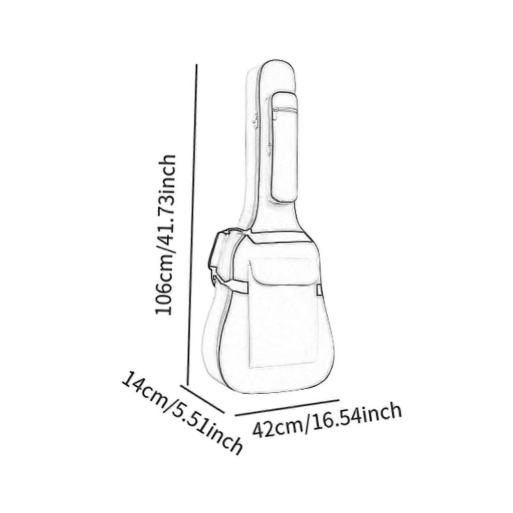 Description: With Shoulder Strap And Handle: This ukulele backpack adjustable backpack shoulder straps and padded carry handle makes it very comfortable to carry aroundApplication: Available for 40-41inch acoustic, Electric, and electric bass guitarsFeature: 2 thick adjustable shoulder straps and a comfortable cushioned side handle for daily convenient use or travel.Material: Guitar case is made of nylon material, thick padded sponge and smooth soft lining ; thick sponge can prevent guitar from damageLarge Capacity: Large exterior pocket with big enough space for hold music sheets books, tablet, and guitar accessories Specification: Material:Nylon Size Chart: 106cmx42cmx14cm/41.73inchx16.54inchx5.51inch Package Includes: 1 Guitar Bag Note: Please allow slight dimension difference due to different manual measurement.