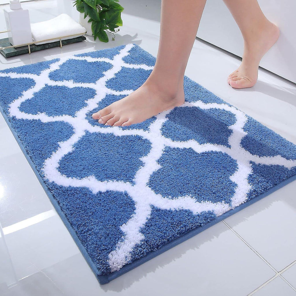 (blue and white) Soft Absorbent Microfiber Bath Rug, Non-slip Plush Shower Rug, Machine Washable And Dry, Shower Mat, 40cmx60cm, Gray