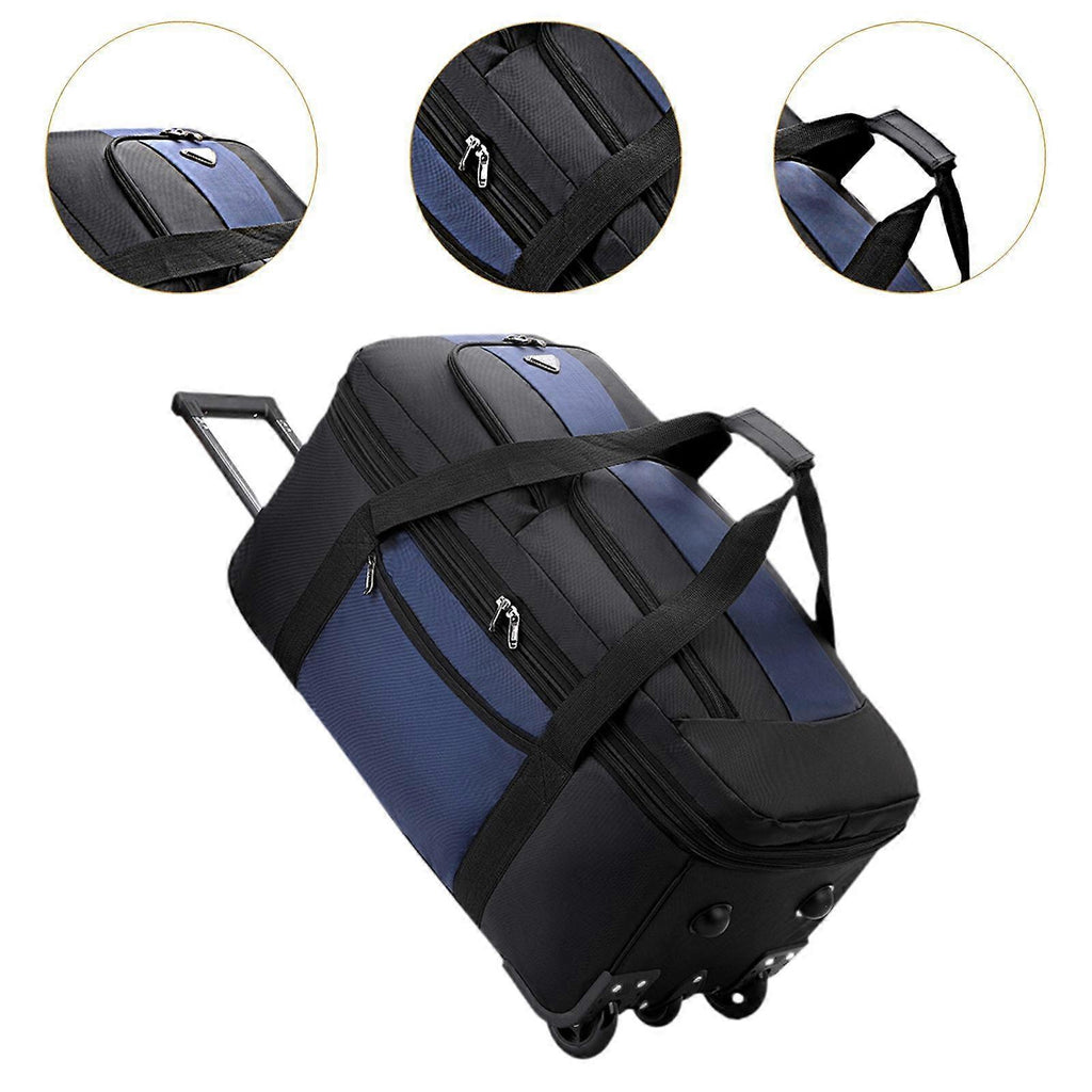 (Blue) Duffel Bag with Wheels Rolling Garment Bag for Beach Traveling Business Trip Black