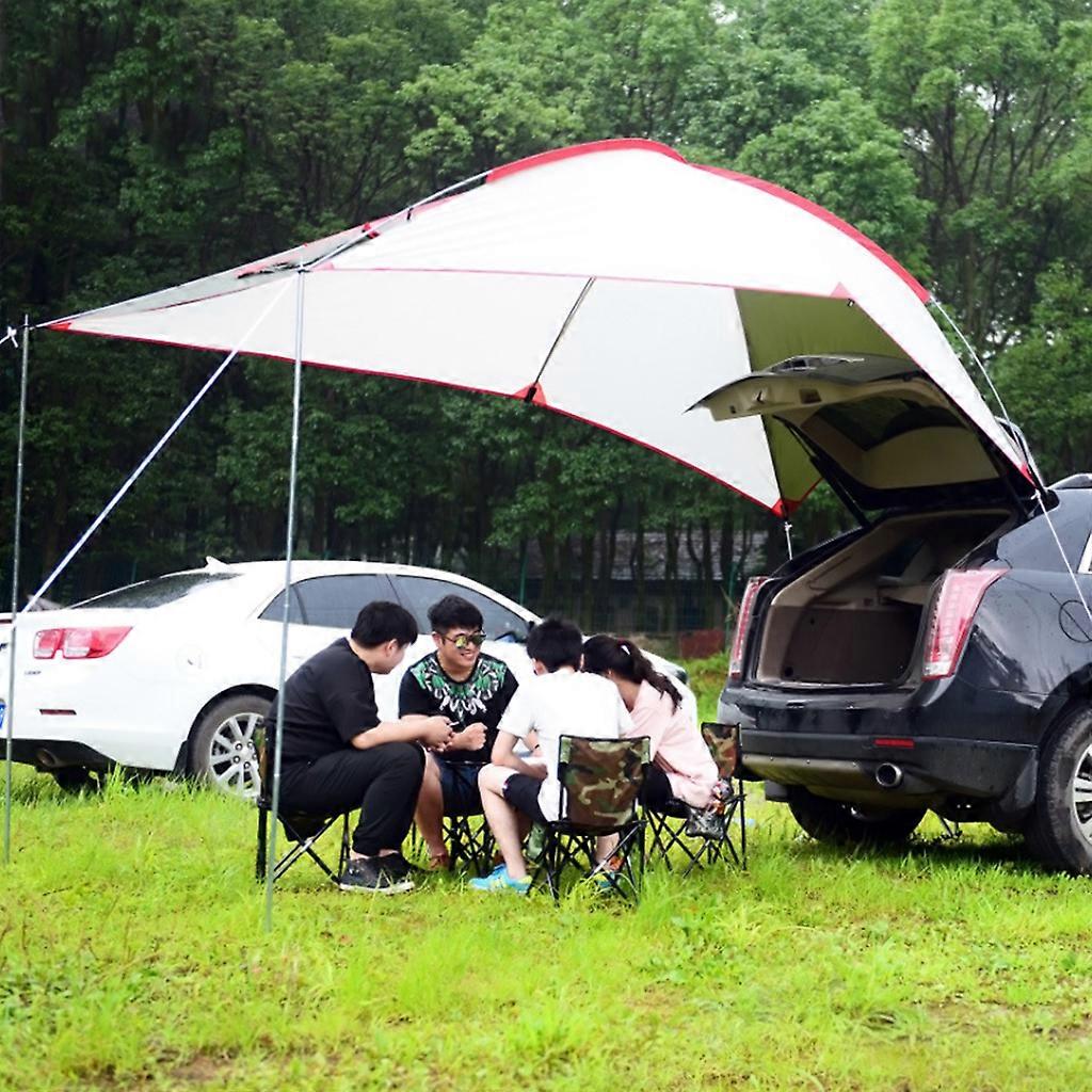 Features: and high quality Universal Car Awning for Trailer, Van, Pickup Truck, SUV, MPV, Hatchback and Sedan. Unfold size: 240x200x190cm. Package size:50x17cm. Weight:2.95kg. Ripstop oxford cloth make it tearproof and waterproof. This SUV canopy not only can be used on the sides of a vehicle but also can be used at back of car. Extended Room. This car and trailer awning provided a nice shaded area outside to cook, eat and hangout. Spacious enough for a couple of bikes and 3 or 4 people. Specifications: Material: Aluminum Alloy + Oxford Cloth Size: Approx.240x200x190cm/94.49x78.74x74.80in Color: Blue, Red, White(optional) Note: 1.Please allow 1-2cm errors due to manual measurement, make sure that you do not mind before you order. 2.Due to the difference between different monitors, the picture may not reflect the actual color of the item. Package includes: 8x Wind Ropes 8x Ground Nails 2x Struts