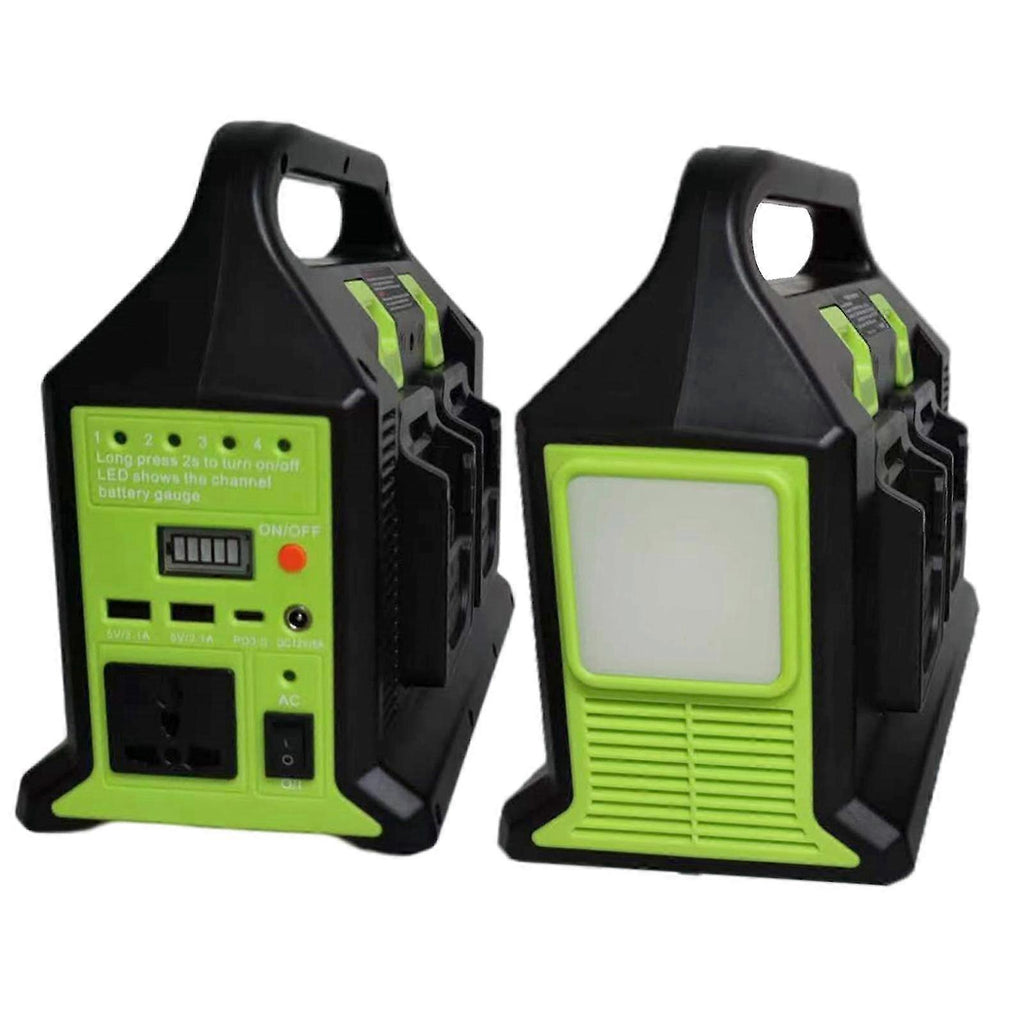 Product Description Power Inverter Modified Sine Wave DC 12V to AC 230V for Makita & Bosch Battery Warehouse Experience reliable power conversion with our Modified Sine Wave Power Inverter, designed for use with Makita and Bosch batteries. This versatile inverter is perfect for outdoor travel, camping, and mobile power needs, providing multiple output options and robust protection features. Key Features: High Compatibility: Suitable for use with Makita and Bosch lithium batteries, ensuring versatile and flexible power options. Multi-Battery Design: Utilizes four batteries in turn (high voltage to low voltage) with a design power display, providing continuous power without battery interruption (batteries not included). Versatile Output Options: Includes two USB ports (5V/2.1A), one Type-C port (3A), one DC port (12V/5A), and one AC inverter socket (230V). Also features a built-in lamp with two brightness settings (600 lumens and 1200 lumens). Outdoor Ready: Ideal for charging Android/iPhone devices, powering small DC appliances, and using outdoor small refrigerators, coffee machines, small fans, laptops, shavers, and LED lights. Electrical Protection: Equipped with low voltage protection, overload and overcurrent protection, and short circuit protection to ensure safe and reliable operation. Portable Design: Handle design for easy carrying, with a compact size of 295245195mm, making it perfect for outdoor use. Specifications: Condition: 100% New Battery Channel: 1-4 channels Battery Input: 18V/20V lithium battery DC Output: 12V/5A (Max 10A) USB Output: 2 x USB-A 5V/2.1A, 1 x Type-C 5-12V/18W, PD3.0 AC Output: Modified sine wave 300W AC, Voltage: 220-240V, Frequency: 50Hz LED Output: Color Temperature 6000K, 2 Modes (10W/6W) Operating Temperature: -10C to +40C Size: 295245195mm Color: Green Package Includes: 1 x Power Inverter (without battery) 1 x Instruction Manual Benefits: Convenient Power Solution: Provides a reliable power source for various devices and appliances during outdoor activities and emergencies. Robust Safety Features: Built-in protections ensure safe operation, preventing damage to connected devices and the inverter itself. Portable and Compact: Easy to carry and transport, making it ideal for camping, travel, and other outdoor adventures. Usage Tips: Ensure Correct Battery Voltage: Use fully charged batteries to avoid low voltage protection shutdown. Replace batteries when the voltage is lower than 15V. Monitor Power Usage: Avoid overloading the inverter by keeping the power usage within the rated 300W capacity. Utilize All Ports: Take advantage of the multiple output ports to power various devices simultaneously. Additional Information: High Performance: Delivers consistent and efficient power conversion with a modified sine wave output. Easy to Use: Simple operation with clear instructions provided, making it user-friendly for all experience levels. Durable Construction: Built to withstand outdoor conditions, ensuring long-lasting performance and reliability. Upgrade your portable power capabilities with our Power Inverter Modified Sine Wave DC 12V to AC 230V for Makita & Bosch Battery Warehouse. Enjoy reliable power on the go with versatile output options and robust protection features. Order now and ensure you have the power you need, wherever you are!