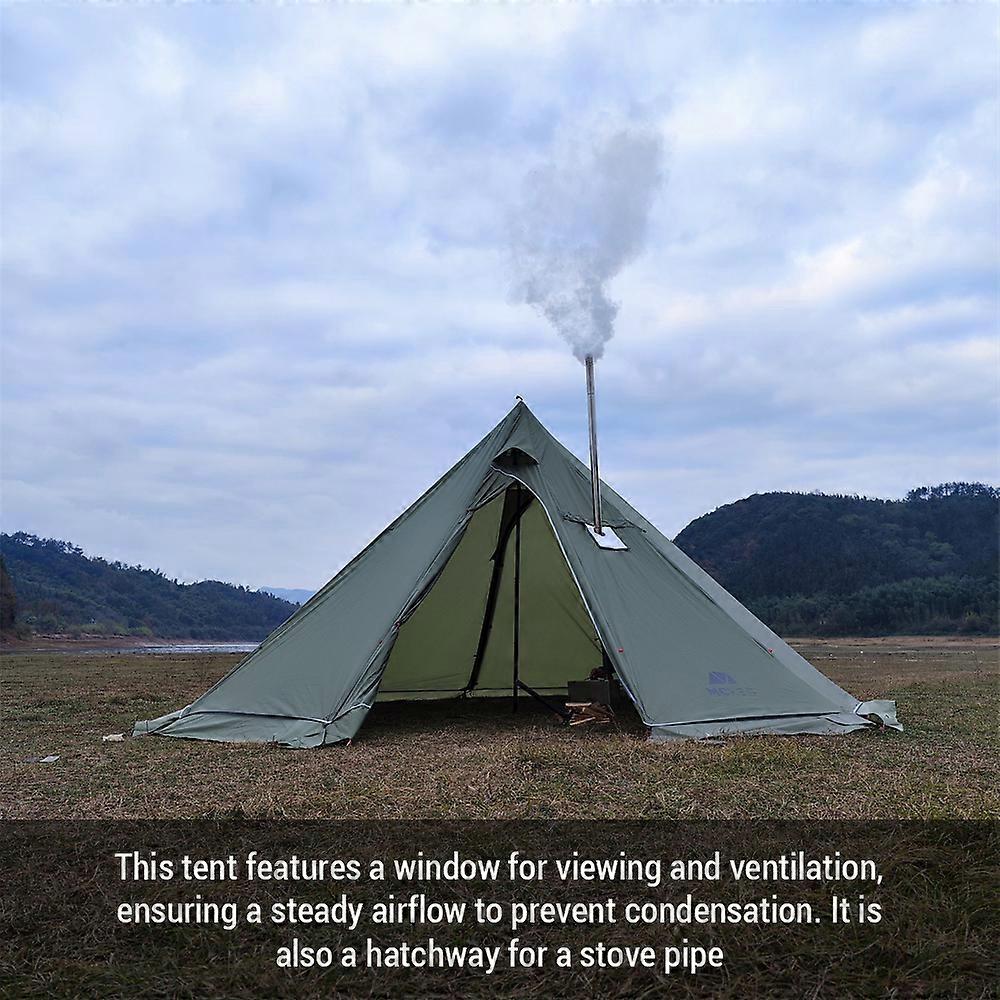 This is a versatile camping tent, perfect for outdoor activities such as fishing, wilderness exploration, and hunting. Even in adverse weather conditions in the wild, this tent provides the comfort of home. Features: This tent features a window for viewing and ventilation, ensuring a steady airflow to prevent condensation. It is also a hatchway for a stove pipe. With a quick and easy setup, this teepee tent can be assembled instantly. Simply position the aluminum alloy center pole, stake out the guy lines, and your basecamp is ready. The tent comes with a comprehensive setup kit, including tent pegs, guy-lines, and a tent pole. The teepee/pyramid-shaped design is easy to set up, requiring only one tent pole. Ideal for 4-season camping, hiking, backpacking, hunting, fishing, and more, this tent is a versatile addition to your outdoor gear. Specifications: Material: Plaid fabric, aluminum alloy. Color: Brown/ Army Green/ White (optional) Size: 500*500*240cm/ 196.9*196.9*94.5in Weight: 3.98kg/ 8.8lbs Package list: 1* tent 15 * tent pegs 5 * wind ropes 1 * outer bag 1 * tent peg bag 1 * tent pole 1 * tent pole bag 1 * fireproof cloth