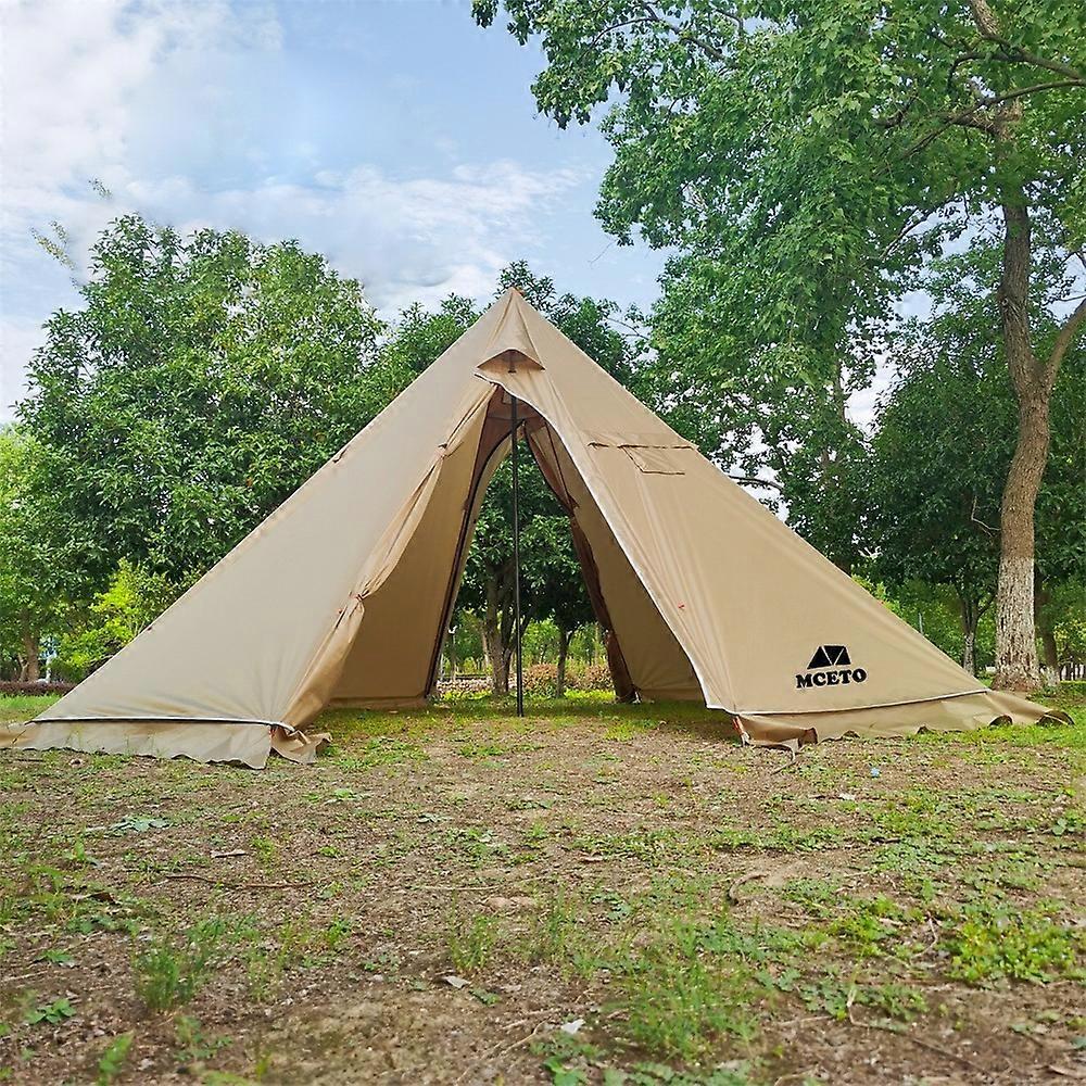 (Brown) 5-8 People Tipi Hot Tent with Stove Jack Camping Pyramid Teepee Tent for Camping Backpacking Hiking