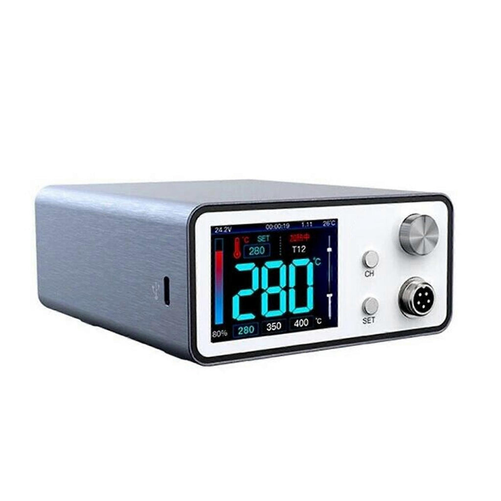 Feture 1. Connect to Aixun platform for free software upgrade automatically, unlimited function upgrade. 2. Adopt 200W super power supply, only takes 4 seconds for C245 soldering iron to rise to 380 . 3. Intelligent recognition of welding target and environment, intelligent power compensation and automatic protection. 4. 2.4 inch color display, 100-480 temperature adjustable, with real-time dormancy. 5. Support 936, T12, T245 three handles, automatic identification of handle model and working state. 6. Personal habit temperature self memory, three channel temperature fast switching, knob adjustment. 7. The host has built-in environment temperature sensor to avoid high temperature operation. 8. Automatic record of working time, automatic reminder of fatigue operation. 9. Maximum support of 24 V-8A current output, with DC power supply and burning function. 10. Ultra strong anti-static isolation design, meet the industrial ESD standard. Option: option1:T3A-936 Version option2:T3A-T12 Version option3:T3A-245 Version