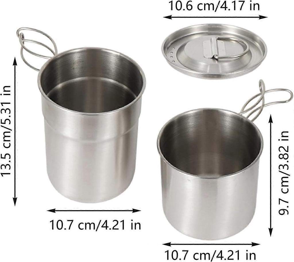 1. DoppelpotDesign: Modernize your outdoor experience with a dualpurpose tool that meets the requirements for cooking and liquid supply, ensuring smooth transitions between integrating functions for improved practicality 2. Smart Folding System: The camping cookware uses an intelligent folding system for efficiency, promoting compact storage of utensils, reducing the likelihood of scratches or damage, and maximizing backpack space for adventurers seeking reliable packaging solutions 3. Robustes Materialkonstruktion: This cookware constructed with strong stainless steel and combines heatresistant and deformation resilience, delivering reliable performance throughout your outdoor trips 4. Kompaktes und funktionales Design: The cookware is equipped with a nested doublepot layout, ensuring a lightweight build and seamless assembly, enhancing the outdoor cooking experience with its compact and efficient features