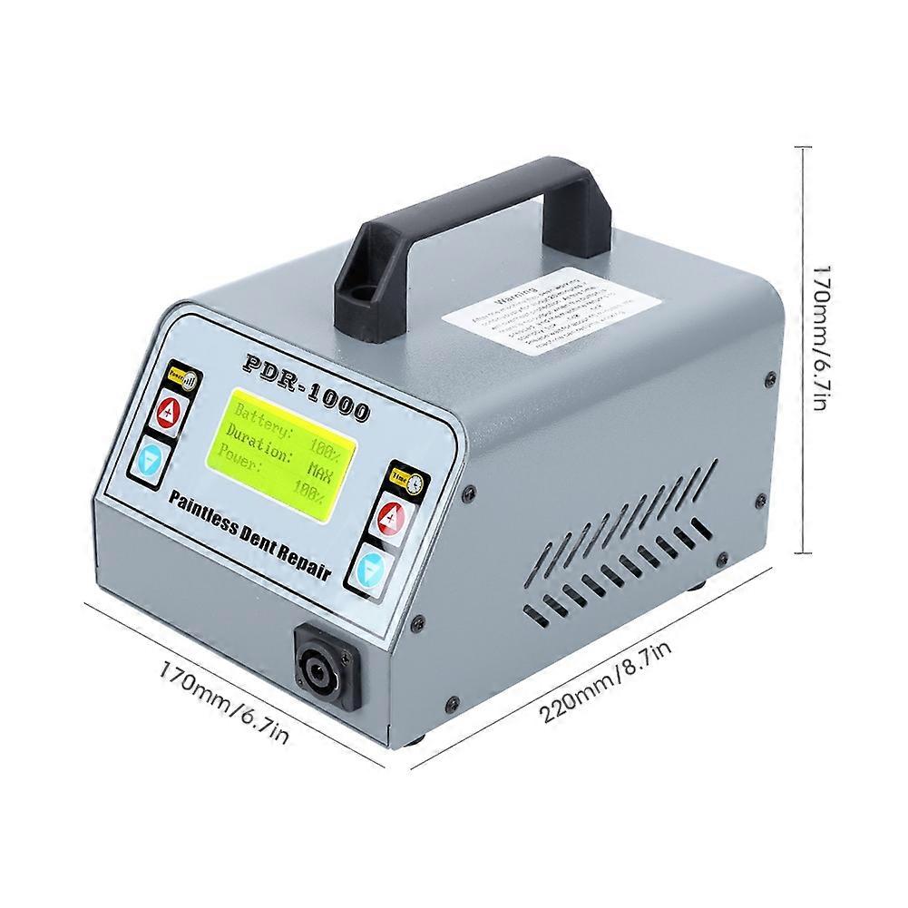 Feature: 1. This machine uses the latest single?chip program control technology to precisely control the working waveform. 2. The main component configuration is ranked second, the original imported components to ensure product performance. 3. Dent repair is smooth and does not damage the painted surface, suitable for smooth dents, such as ice pits. 4. Fast maintenance and high work efficiency; low maintenance cost and quick results, your best choose. 5. Only effective for the depression of the elastic steel metal car body, the shape of the depression is similar to the rounded dent produced by the hail and the body. Specification: Condition: Item Type: Car Paintless Dent RepairMaterial: Stainless Steel +ABS+ RubberColor: As Pictures ShownApplication: The device is only effective for the depression of the elastic steel and metal car body. The shape of the depression is similar to the rounded dent produced by the hail and the body. No Application: Depressions with dead ends or pits that are too deep are not suitable, Body parts that have been traumatized on the painted surface and have been sheet metal are not applicable, Not suitable for creases on paint surface or ribs in concave parts, Aluminum body is not applicableModel: Paintless Dent Repair-1000 Power Frequency (hz): 50/60hz Rated Power: 1000w Operating Voltage: 5V Power Factor: ??0.95 Efficiency : ??90% Cooling: Air-Cooled Degree of Protection: IP23 Net Weight: Approx. 2.5kg/5.5lb Dimensions (LxWxH): Approx. 220 x 170 x 170mm/8.7 x 6.7 x 6.7in. Package List: 1 x Dent Repair Instrument2 x Power Cable1 x Controller5 x Rocker 1 x Instruction