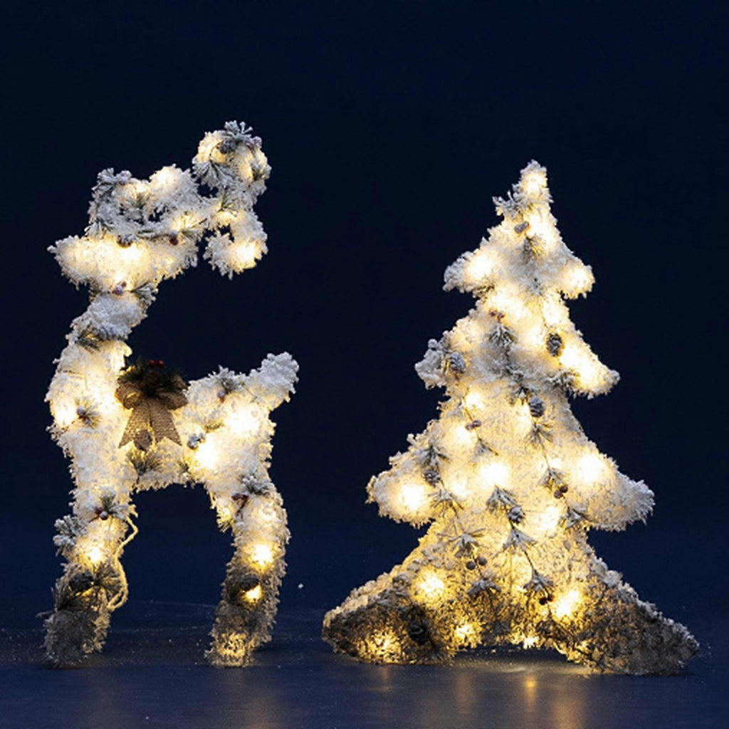 (Christmas tree S) Christmas Flocking Statue Favor Gift with Light for Home Decoration Winter Deer Elk S