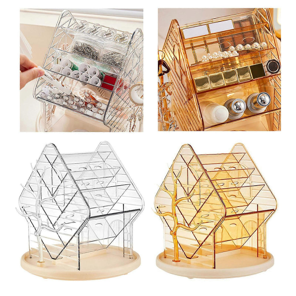 (Clear) 360 Degree Swivels Cosmetic Holder Large Capacity Jewelry Organizer Storage Box for Makeup Brushes and Lipsticks Clear