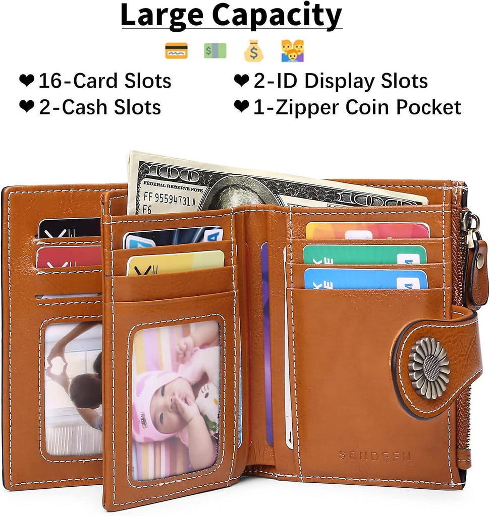 describe: Premium Wallet: Women's wallet is made of soft genuine leather, soft and wear-resistant, fine workmanship, a variety of colors to choose from. < p> RFID and NFC Protection: Our card sleeves prevent personal information theft and unauthorized debit or contactless payments via RFID/NFC and protect the magnetic strip from scratches and damage. Now you can be sure that you no longer have to worry about close contact (trains, ticket offices, concerts), data theft and attacks from hidden scanners, card readers or smartphones. SMALL SIZE BUT LARGE CAPACITY: SENDEFN women's wallet has 16 card slots, 2 photo windows, 1 zippered coin compartment and 1 main compartment for banknotes. The wallet is easy to carry and meets almost all your storage needs. Dimensions: 12.5 x 2.5 x 10 cm (L x W x H). Lightweight, compact and easy to transport. Convenient for storing your credit cards/ID cards/bills/coins. Practical and multifunctional: The wallet is suitable for many occasions such as parties, shopping, traveling and so on. And can meet almost all your storage needs. It is perfect for all occasions (Christmas, Valentine's Day, birthday, Mother's Day or any other holiday).