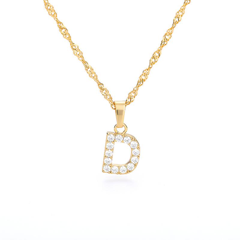 (D) Gold Zircon Letter Pendant Stainless Steel Chain 18k Gold Plated 26 Letter Necklacea