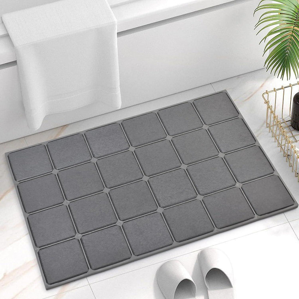 (dark gray) Bath Mat, Super Absorbent Silica Shower Mat Suitable For Bathroom Floor Silicone Webbing Wrapped Protective Mat, Fashionable And Modern -60cm X 40cm T