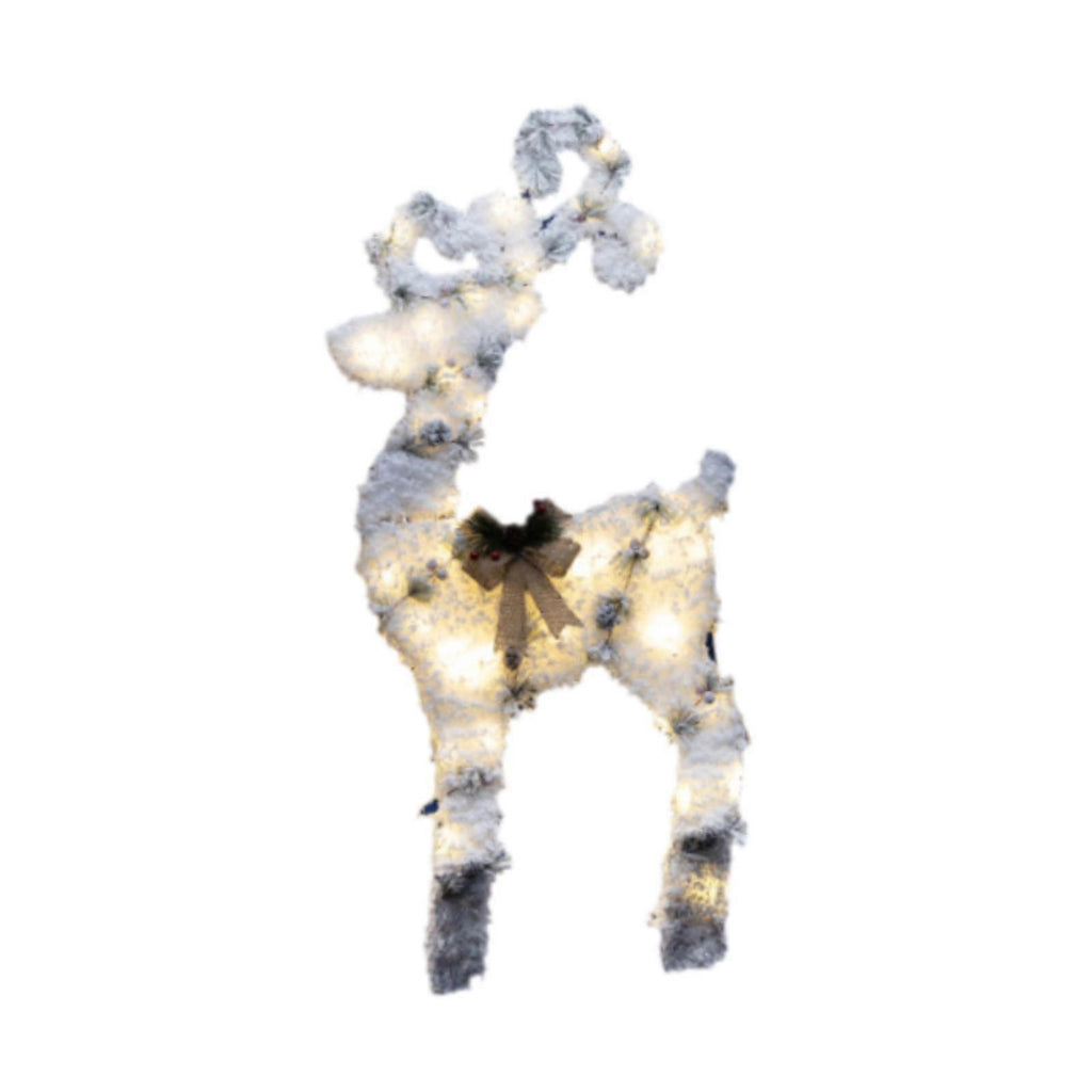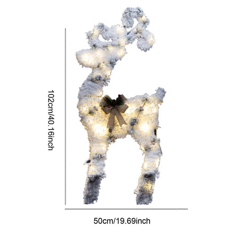 (Deer Elk M) Christmas Flocking Statue Favor Gift with Light for Home Decoration Winter Deer Elk S