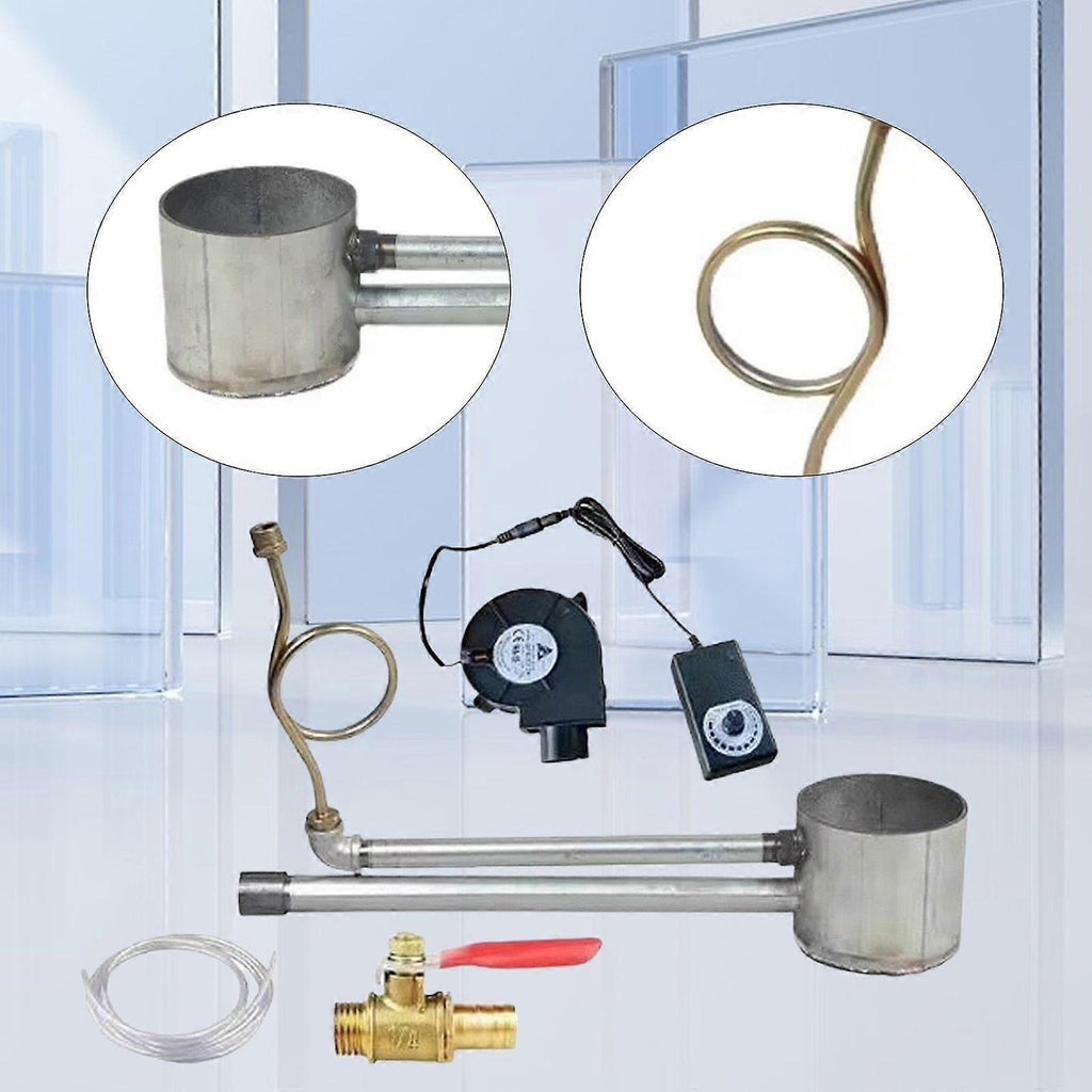 Waste Oil Burner Old Motor Oil Stove Cooking Heating Furnace Burning Tool This product is a new design of waste oil burning tool, with high pressure electric blower, which can make waste engine oil get fully burned. The experiment proves that when the waste oil is ignited, it takes only 3 minutes to boil 1 kg of water. It will help you make full use of used engine oil for heating, cooking, etc. Material: galvanized steel (The furnace will turn red after high temperature combustion, but it will not affect the use) Blower Input Voltage: 5-12V Instructions: 1. Prepare a bucket for waste oil by yourself and install the valve at the outlet. 2. Open the valve, let the oil flow into the burning furnace to a depth of 1 cm and then close the valve. 3. Ignite some flammable paper and put it into the furnace for full combustion. 4. Turn on the blower and wait for the waste oil to burn up gradually, adjust the air intake according to the fire speed. 5. Open the oil inlet valve and enter the combustion state, the fire will gradually increase. The furnace will burn better as the temperature rises.