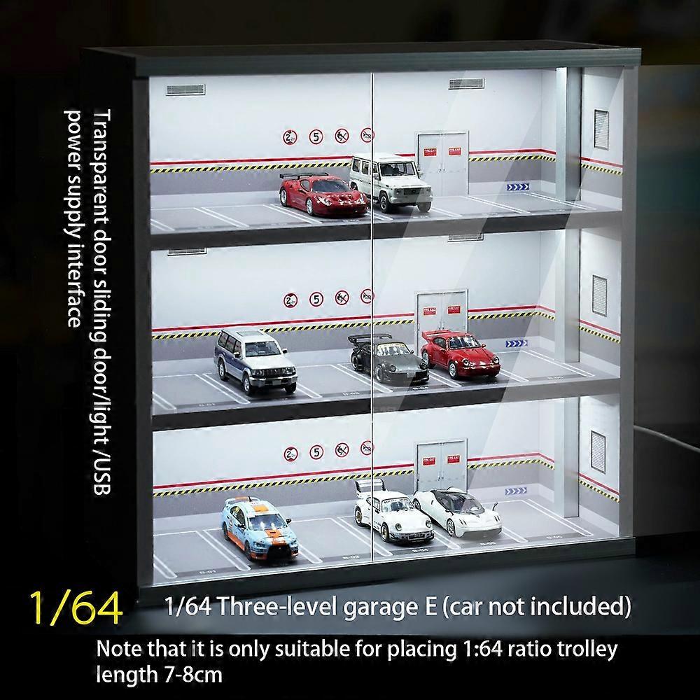 (E) 1/64 Diorama Three-story Car Garage Model Parking Lot LED Lighting Scene Model