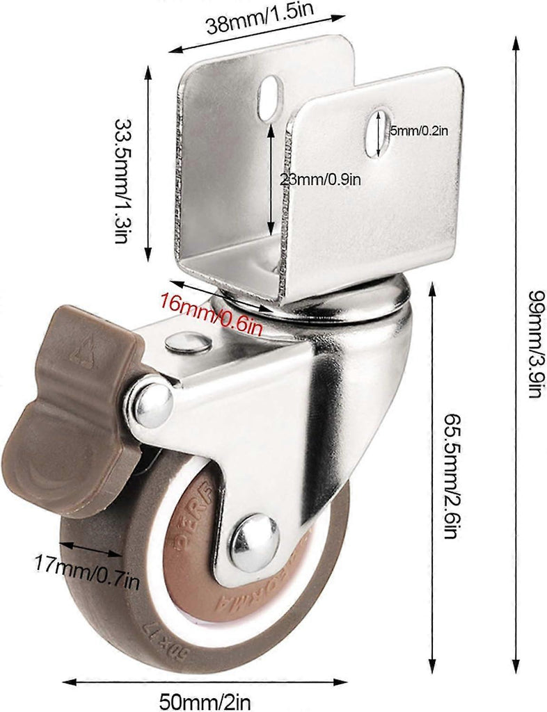 Furniture Casters,4Pcs,UShaped Splint,Rubber Swivel Castors,Crib Casters,Silent Casters,360?? Rotation,Replacement Wheels.,2 Brake2 no Brake,16mm