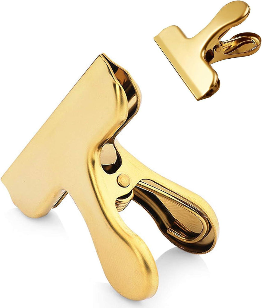 (gold) Set Of 8 Bag Clips Heavy Duty Stainless Steel 2" Durable Paper Clasp Handle Coffee Food Bread Bag For Home Kitchen - 8 Pieces (golden)