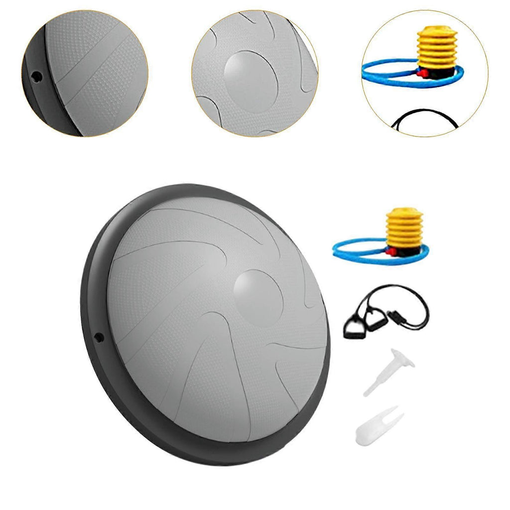 Description: Premium Material: The Balance Ball is made from PVC and PP, which is lightweight, wear resistant, sturdy for long time use, and easy to cleanAnti Slip Design: The anti slip pattern enhances user stability to the maximum extent, allowing you to securely stand, jump, kneel or lie on this balance training equipmentFeature: With a strong load capacity, it is very convenient to carry and store in the gym, at home, or in the office. The included air pump can help you adjust resistance as neededVersatile: Half Ball Balance Trainer is fit for push ups, squats, sit ups, mountain climbing exercises, lunges, planks, and many other workouts to make full use of your home fitness routineProduct Size & Package Contents: The balance ball has a diameter of 46cm/18.11inch. The package includes 1 ball, resistance bands, an air pump Specification: Material: PVC, PP Size Chart: 46cm/18.11inch Package Includes: 1 Balance Ball with Accessories Note: Please allow slightly errors 1-2cm differences due to manual measurement.