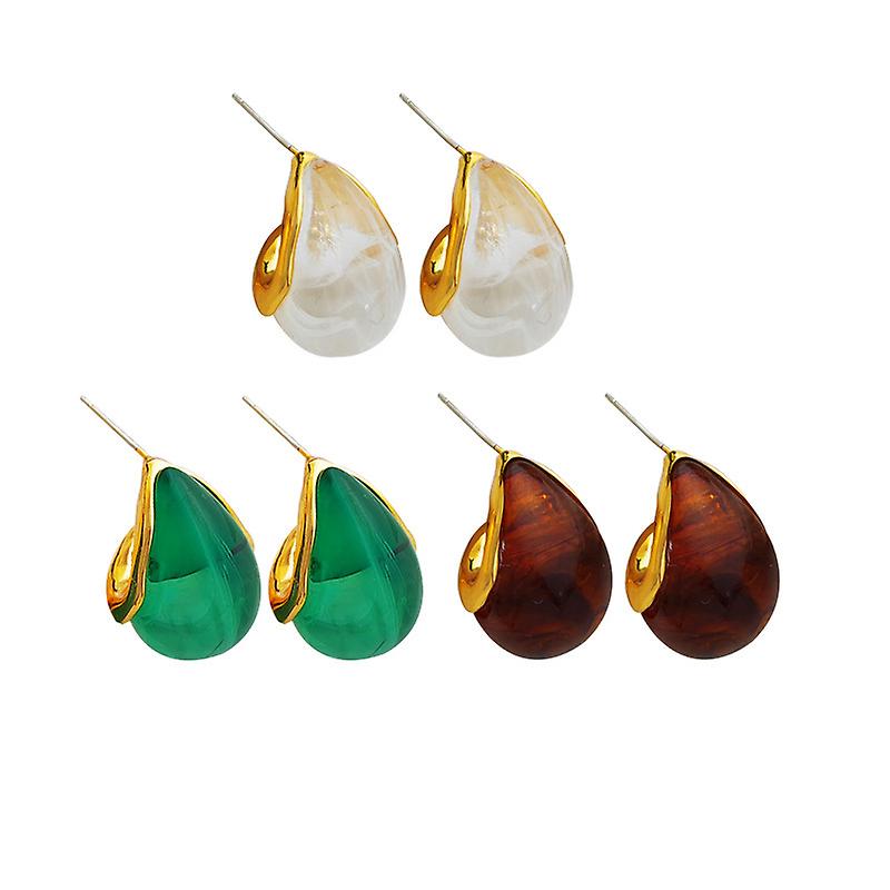 (green) Copper-plated Real Gold S925 Silver Needle Retro Simple Teardrop Earrings Simple Resin Earrings Trendy Earrings