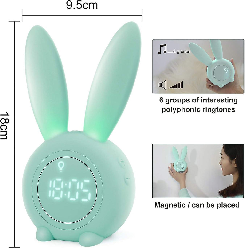 (green) Cute Rabbit Shape Sensor Alarm Clock, Intelligent Automatic Breathing Light Adjustment, Automatic Time/date/temperature Display, Sound Control Or Shak