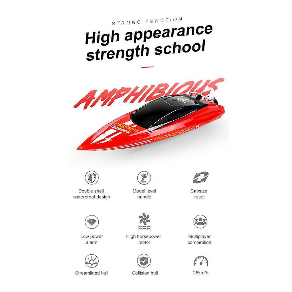 Features: Exquisite Workmanship Remote Control Speed Boat: With exquisite workmanship which makes toy super simulate the high speed boat, powerful high torque 540 motor, restore the real driving experience and infinite imagination with fun of playing. Selection Material: Made by qualified plastics body, and alloy accs, electronic components, durable anti-rolling & waterproof & great sealing performances, perfectly to ensure the stability and make sure the RC boat could operate easily. Easy to Charge: Attached USB cable with rechargeable built-in 7.4V 1800mAh Li-ion battery, the remote controller of 2.4GHz which easy to operate and sensitive controlling. Flexible RC Hydro Speed Boat: The RC hydro speed boat can run fast and flexible in the water, waterproof design and powerful motor make it easier operation, built in propeller to ensure safety driving and not easy break. Great Gift for Kids or Adults: Great birthday gift and Christmas gift for kids & adults,with great attraction to toddlers especially in party game, outdoor playing, also awesome collection for RC hobbyists. Specifications: Product Dimension: approx. 42 x 12.4 x 9.3cm/16.53 x 4.88 x 3.66 inch Net Weight: approx. 1520g/3.35 lbs Color Option: Green/Red/Blue Remote Controller : 2.4GHz, 4 x AA Battery (package excluded) Power Supply: Built-in Rechargeable Li-ion Battery 7.4V 1800mAh Charging Time: approx. 2.5 hours Battery Duration: approx. 9 minutes Material: Plastics, Alloy, Electronic Components Remote Control Distance: around 150 Meters Note: Please allow 1-2cm errors due to manual measurement. Due to the differences between different monitors, the picture may not reflect the actual color of the item. Package includes: 1 x RC High Speed Boat 1 x USB Cable 1 x Rechargeable Battery 1 x 2.4GHz Remote Controller 2 x Hexagon Wrench 1 x Display Stand 1 x Manual