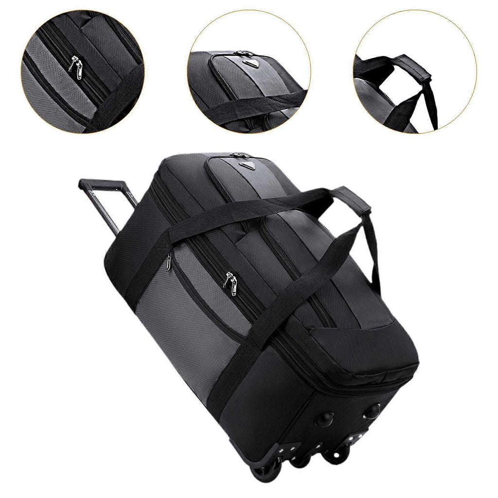 (Grey) Duffel Bag with Wheels Rolling Garment Bag for Beach Traveling Business Trip Black