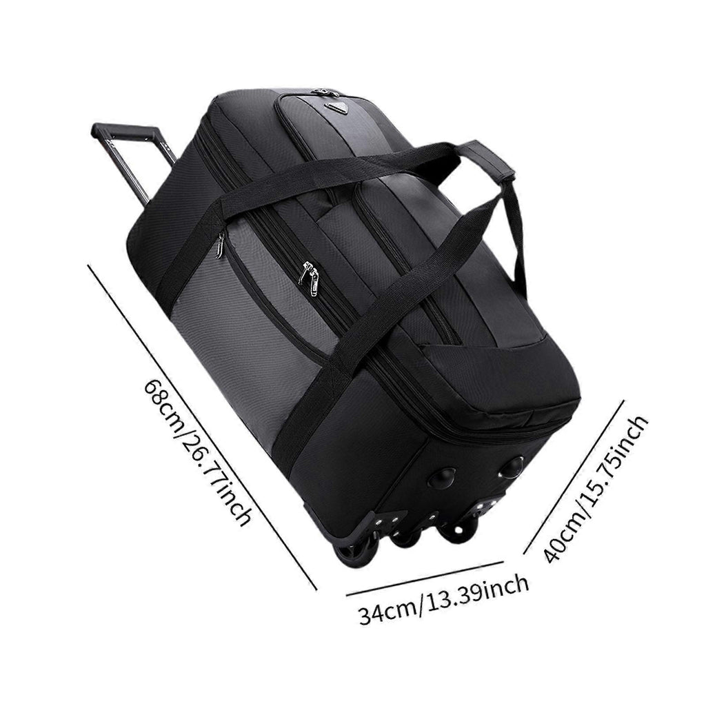 Description: Quality Material: This Travel Duffel Bag is made of quality Oxford cloth, which is sturdy, wear resistant, and waterproof, ensuring long term use.Large Capacity: This Rolling Luggage has a large capacity with multiple compartments and smooth zippers, providing you with ample storage space for easy access to your items.Easy to Use: This Wheeled Suitcase comes with a retractable handle, double sided zippers, and sturdy handles for easy transportation and movement.Multifunctional Application: This Rolling Garment Bag is suitable for various occasions such as travel, business trips, camping, outdoor activities, gym workouts, etc.Practical Gift: Weekend Bag makes a practical gift for men and women alike as well as family or friends. Specification: Material:?Oxford Cloth Size Chart: 40cmx34cmx68cm/15.75inchx13.39inchx26.77inch Package Includes: 1?Wheeled Travel Duffel Bag Note: Please allow slightly errors 1-2cm differences due to manual measurement.