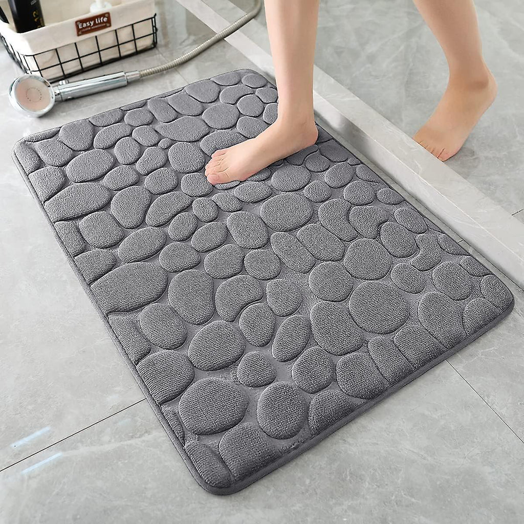 (grey) Pebble Bathroom Floor Mat Bathroom Water Absorbent Doormat Toilet Quick Drying Non-slip Doormat 40x60cm, Dark Gray