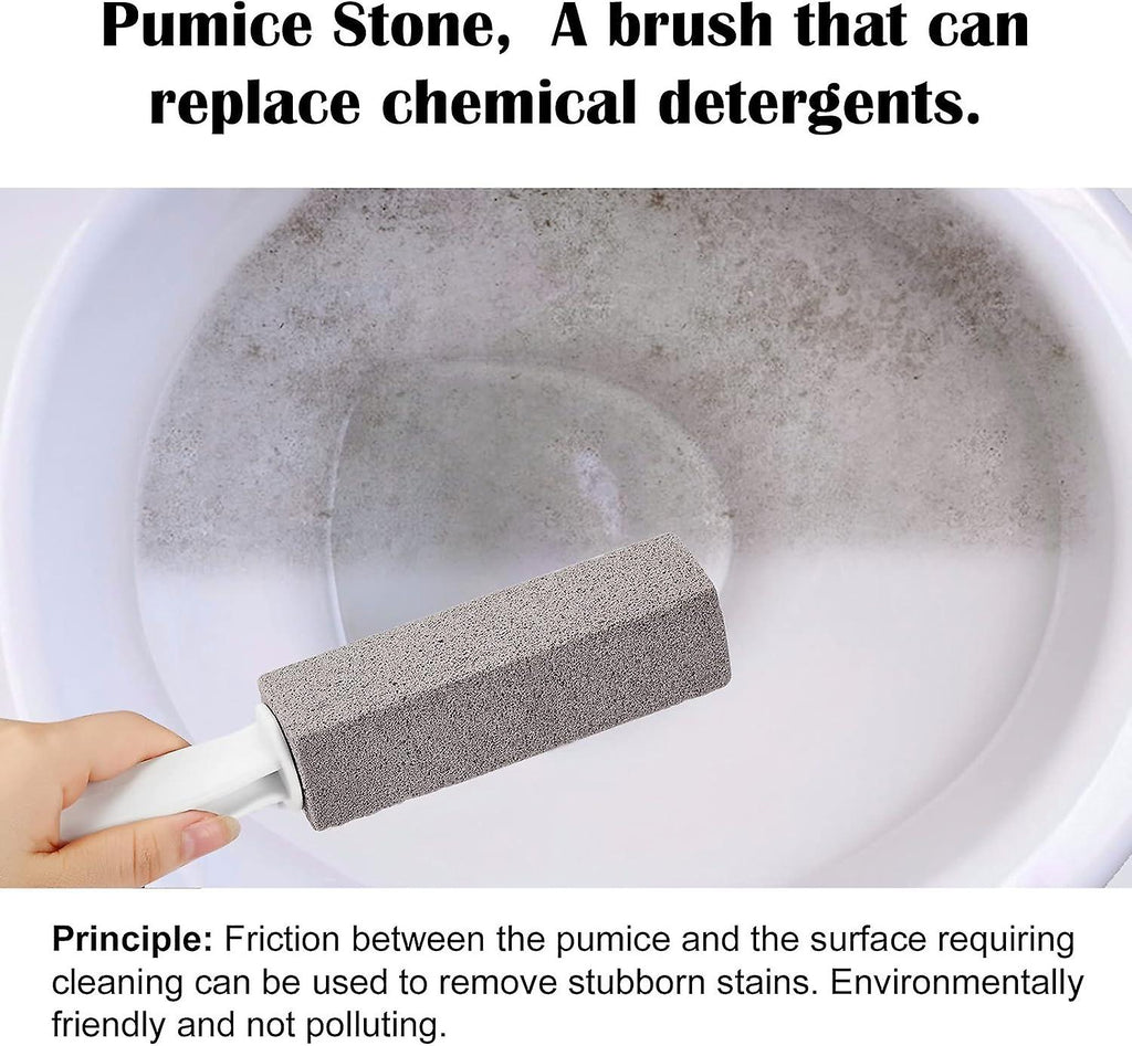 describe: FAST AND VERSATILE: Pumice stone is used to clean limescale deposits in toilet bowls, limescale and hard water rings, toilet bowls, bathroom tiles and other ceramic surfaces. It can also be used to remove rust and grease from grills and ovens. Material, Principle: The pumice toilet cleaning brush is made of pumice stone. Quickly removes stubborn stains by rubbing and ironing without scratching. PRACTICAL: Our pumice stone has a handle, no need to wear gloves, it can be easily removed from stubborn toilet stains clean and is therefore more durable and cleaner. Robust and durable: More than 30% denser than comparable products, more durable and cleaner.
