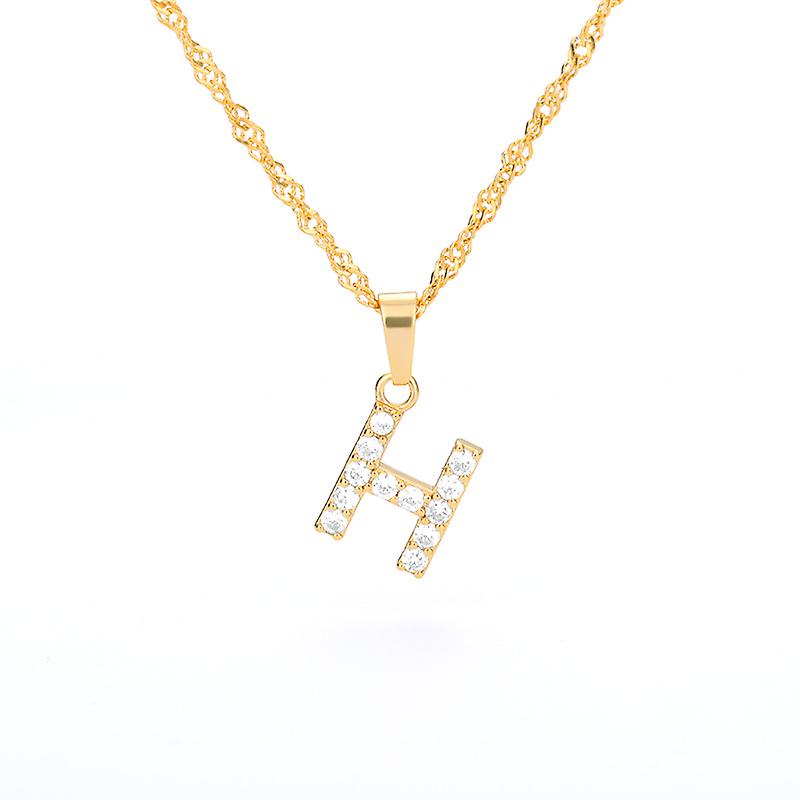 (H) Gold Zircon Letter Pendant Stainless Steel Chain 18k Gold Plated 26 Letter Necklacea