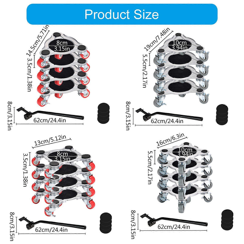 (Large quadruped set) Heavy Duty Furniture Moving Dolly Set 360 Degree Rotates Casters with Brake Professional Lifter Tool Furniture Movers