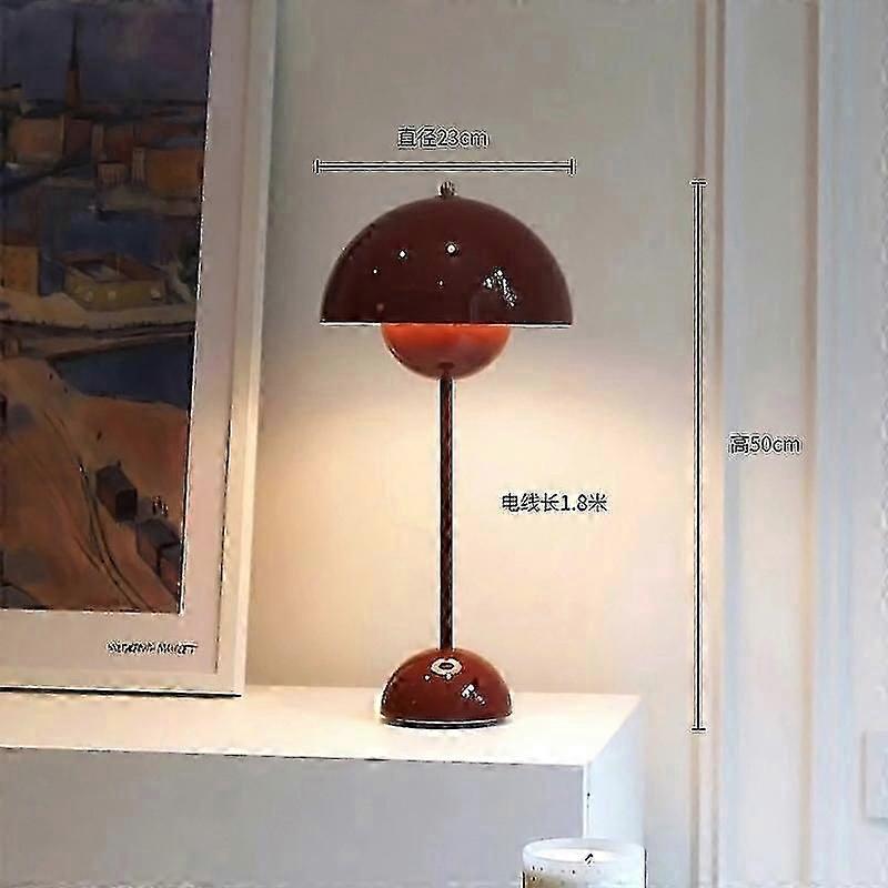 (Large Red Brown) 2023 New Denmark Bud Table Lamp Retro Table Lamp American Style Desk Lamp Charging Lamp Touch Nordic Decoration Table Lamp