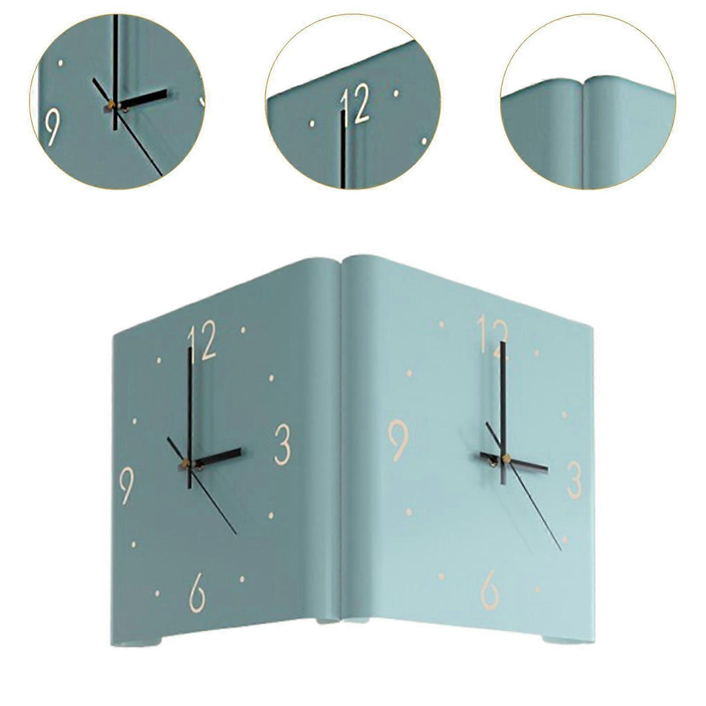 (Light Blue) Double Sided Corner Wall Clock Hanging Clock for Office Living Room Corridor White
