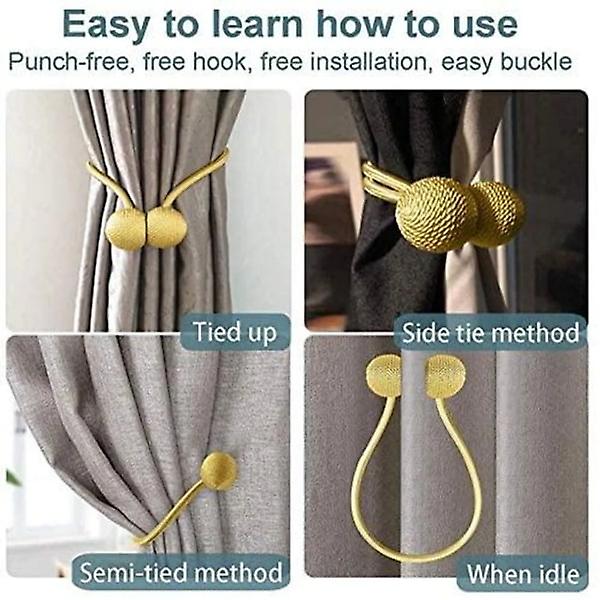 (Light Gold) Magnetic Curtain Ties 2 Pack Home Bedroom Office Decoration Thick Thin Curtains Light Gold