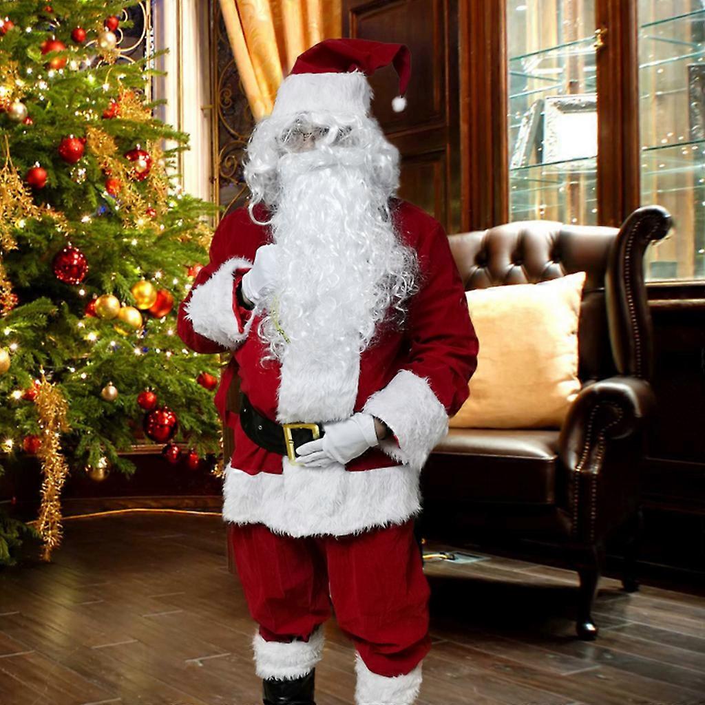 (M) Christmas Adults Santa Claus Suit Classic Velvet Red White Coat Pants Hat Boots Beard Xmas Cosplay Party Costume Set M