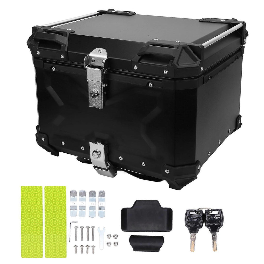 Motorcycle Top Box Aluminum Alloy 55L Quick Release Water Resistant with Safety Lock Reflective Sticker for Helmet Luggage Black