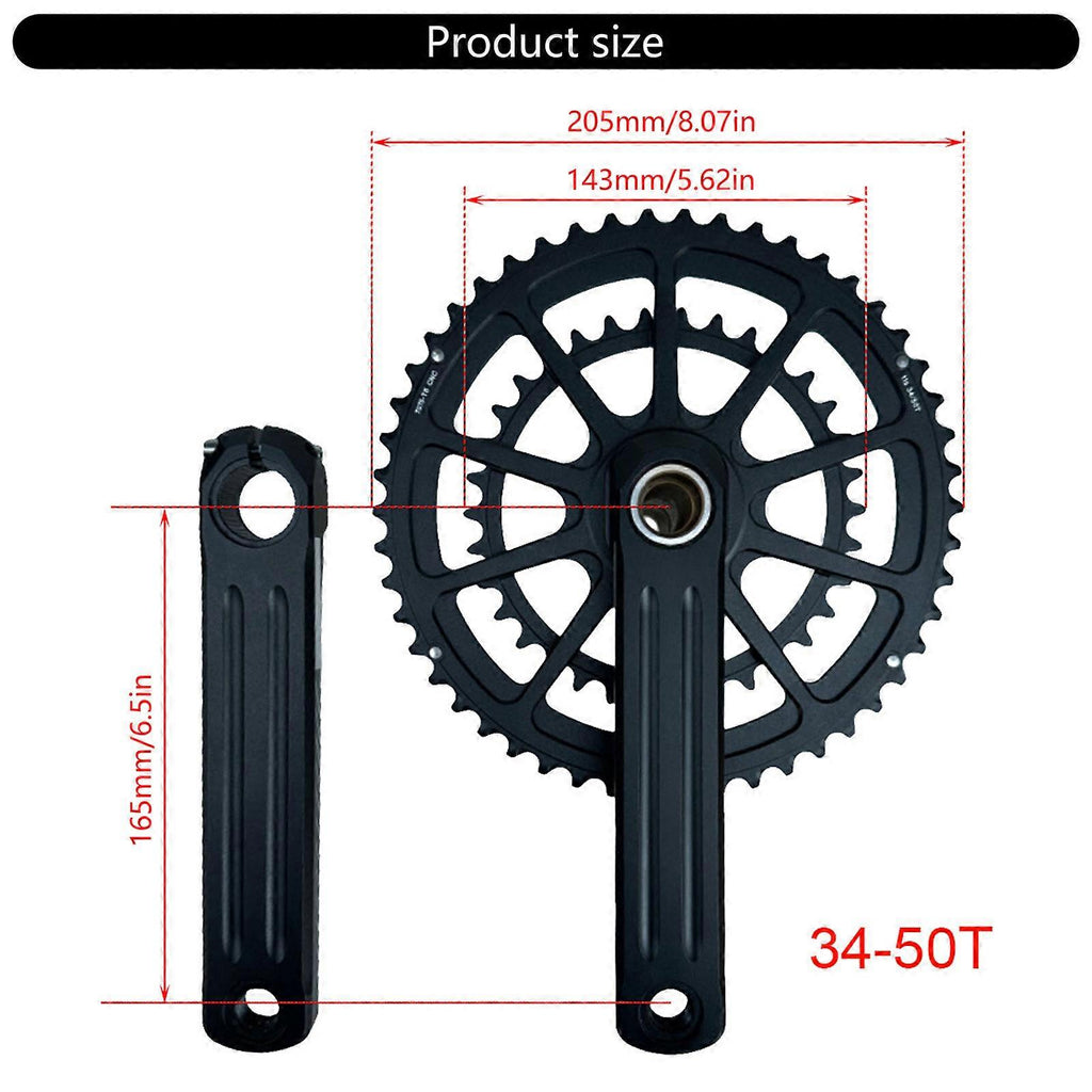 (Not included in BB) Mountian Bike 165mm Crankset with 34T-50T Chainring for 9/10/11 Speed Road Bike for Cycling Double Round Bike Crankset