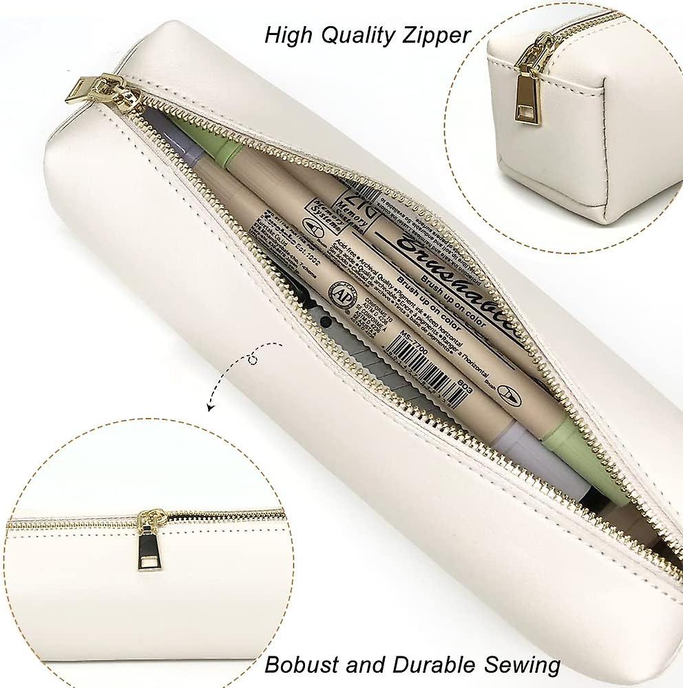 (off white) Portable Pu Pen Bag Large Capacity Makeup Storage Bag Suitable For School Office Youth Gift (white)