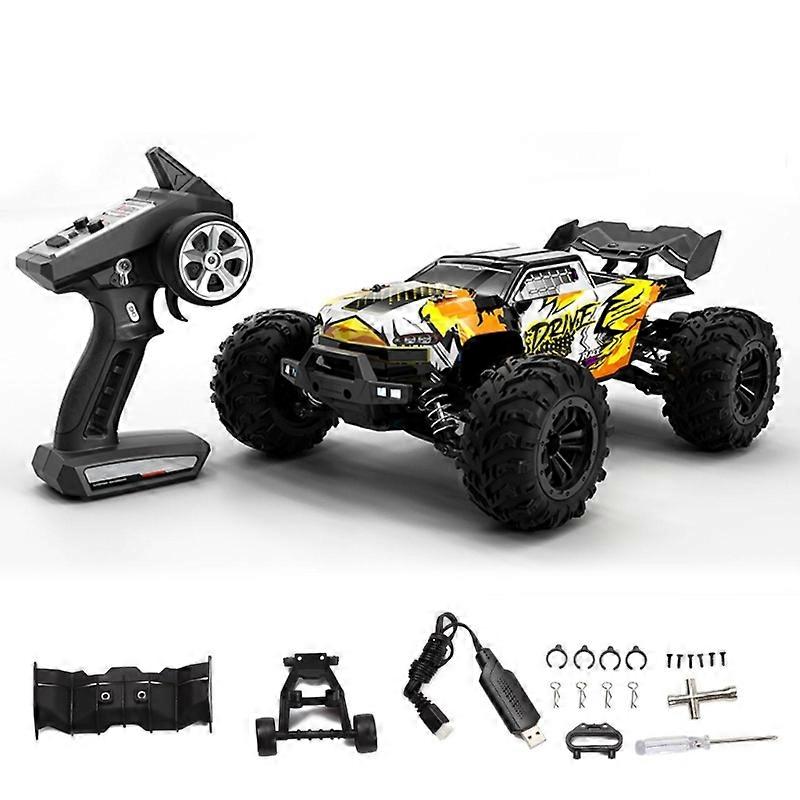 Features: Remote Control Off-road Car: Unique workmanship makes this simulation toy like a real off-road car, scale of 1/16, high speed & powerful brushless motor, restore the real driving experience and infinite imagination with fun of for play, can move forward, reverse, left & right turn, all terrains, super realistic. Qualification Material: The rc desert off-road car made of qualified ABS body, alloy strong support,and electronic component,anti-rolling & great grip tire traction.ensure the stability and make sure the toy could operate easily. Easy to Charge: Attached USB charging cable to connect and charge easily, and the 2.4GHz remote control which is easy to operate and sensitive controlling, four wheel drive with perfect for play experience. Flexible RC Crawler Car: The RC crawler truck car can run freely with powerful motor, flexible with four wheel drive on the smooth or rough roads, speed can upto 43mph, rubber tyres ensure sufficient and strong grip while driving, anticollision antirolling design it easier operate. Great Gift: A great birthday or Christmas gift for kid & adults,with great attraction especially in party games, outdoor for play, also an awesome collection for RC hobbyists. Specifications: Color Option: Green/Red/Blue/Orange Product Dimension: approx. 30 x 23 x 11.5cm/11.for 81 x 9.05 x 4.52 inch Net Weight: approx. 1700g/3.74 pound Remote Controller Power Supply: 3 x AA batteries(NOT included) Battery Capacity: 7.4V 1500mAh Li-ion Battery Duration: approx. 15-18 mins Charging Time: approx. 3-3.5 hours Remote Distance: 120 meters Material: ABS, Alloy, Electronic Component Speed: approx. 70kmh/43mph Motor: 2840 Brushless motor, 4000KV ESC: 35A Note: Please allow 1-2cm errors due to manual measurement. Due to the difference between different monitors, the picture may not reflect the actual color of the item. Package includes: 1 x Remote Control Off-road Vehicle Car 1 x Rechargeable Battery 1 x USB Charging Cable 1 x 2.4GHz Remote Control 1 x Spoilers 1 x User Manual 1 x Screwdrivers