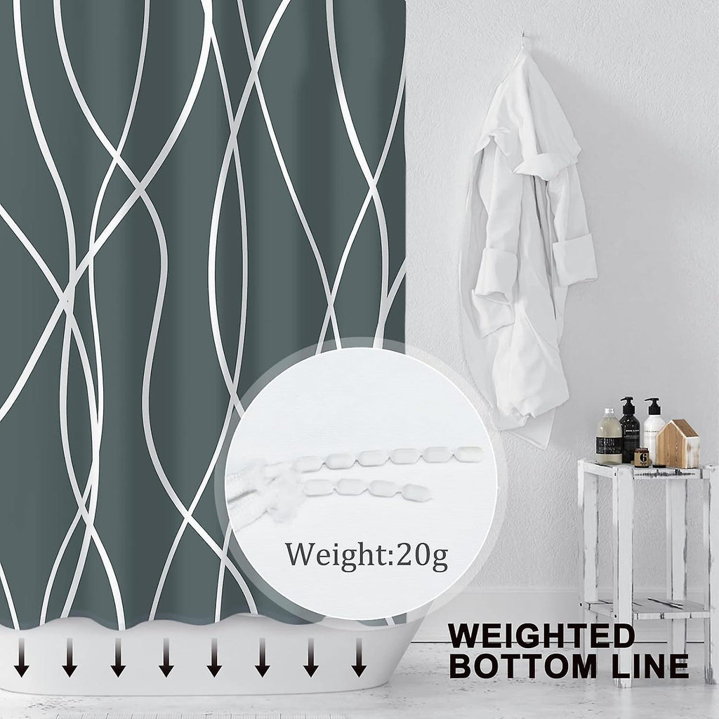 (Package 5) Bathroom Shower Curtain, Waterproof Fabric Bathroom Curtain With Weighted Hem - Black And White