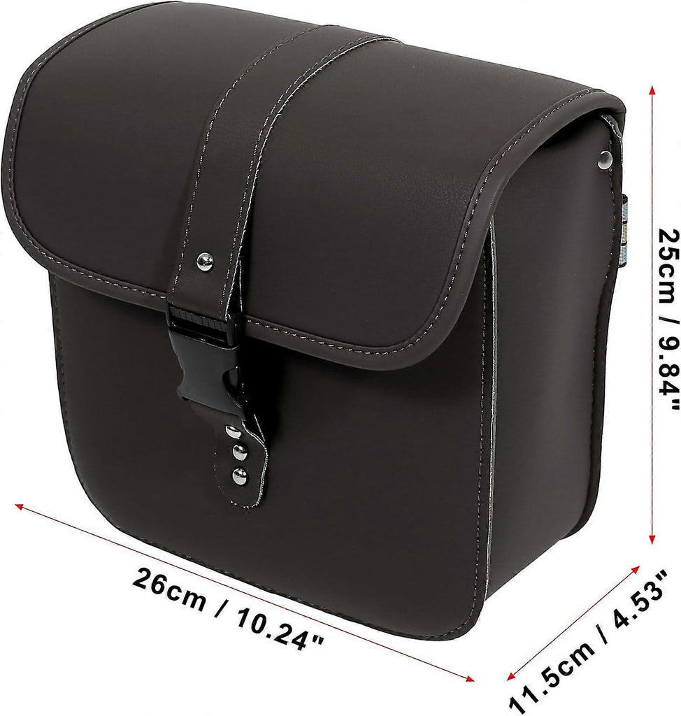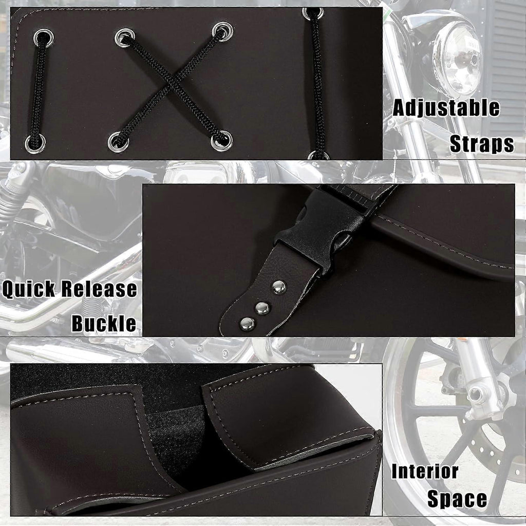 1. Faux Leather: Motorcycle bag is made of faux leather, helps to maintain its shape and it's waterproof. Note: Please do not use it in heavy rain. 2. : Size: 26x11.5x25cm / 10.24'x4.53'x9.84'(LWH). Cycling bag can be used for holding water bottle, sunglasses, tools, etc. Note: Fit for Cushion Width Size (Max): 24cm/9.4' 3. Quick Release Buckles: Motorcycle side bag is convenient to use and keeps your belongings handy. 4. Installation: Tie the liners for saddle bag on the left and right sides into a saddle shape with a rope, and then place it under the seat mount.